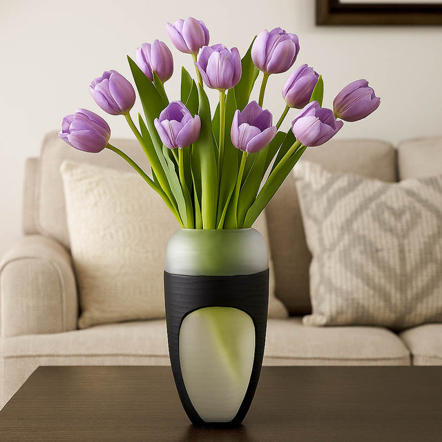 Elevate your interior with the Nilkamal Homes Decorative Vase. Crafted from sturdy glass, it showcases a unique and eye-catching two-tone design that enhances the visual appeal of any room. Its versatile size makes it ideal for placement near entrances or in reception areas, adding a modern touch to your décor. Thoughtfully designed, this vase is both a practical addition to your living space and a lasting statement of elegance.