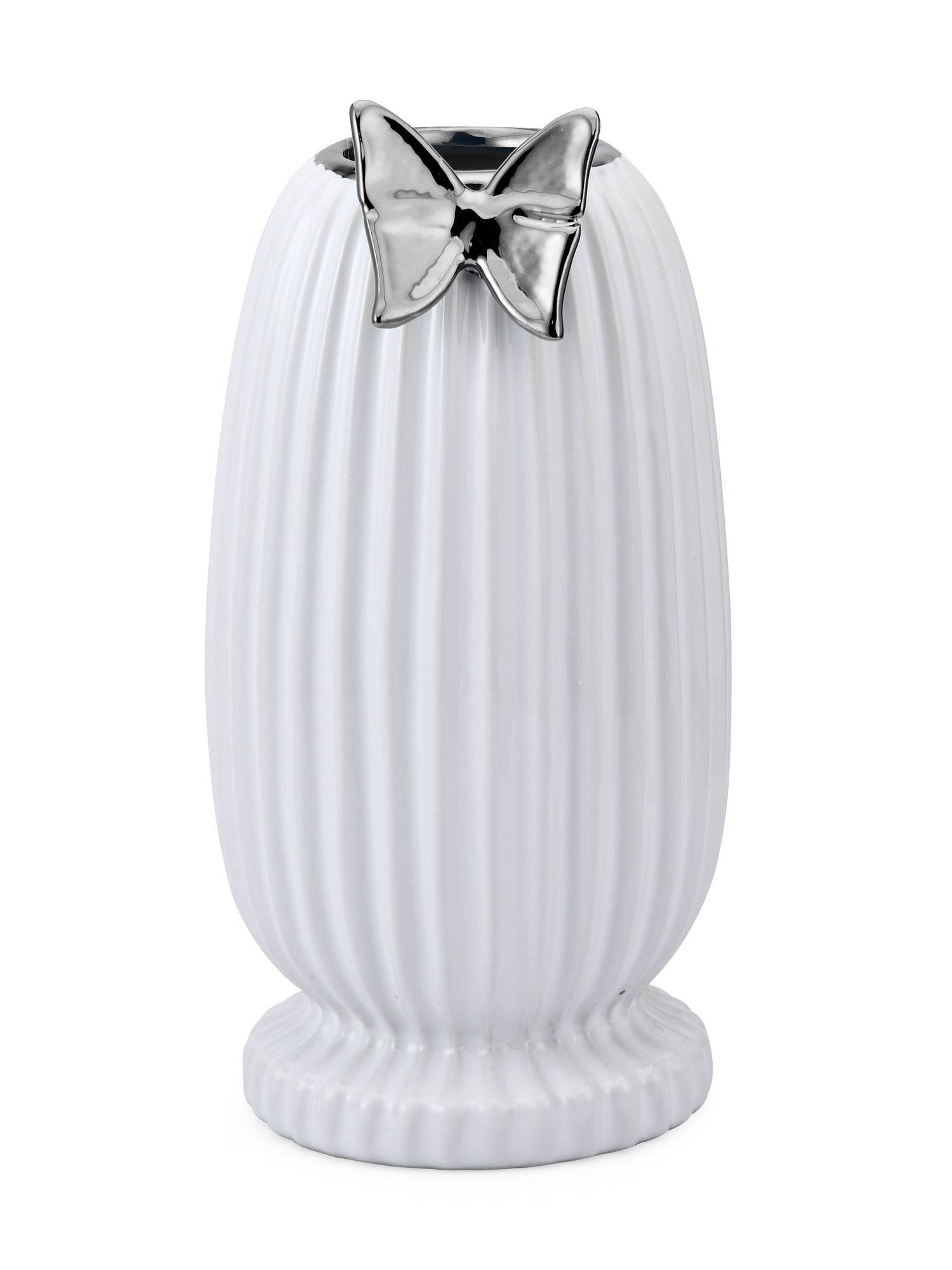 Butterfly Tumbler Ceramic Vase- White & Silver
