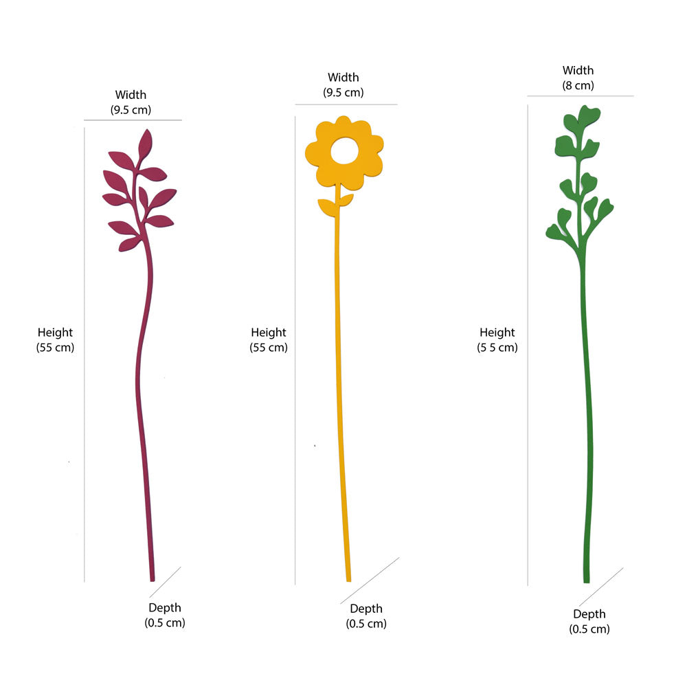 Daisy MDF Artificial Stick Set of 3 (Multicolor)