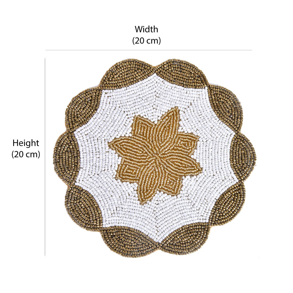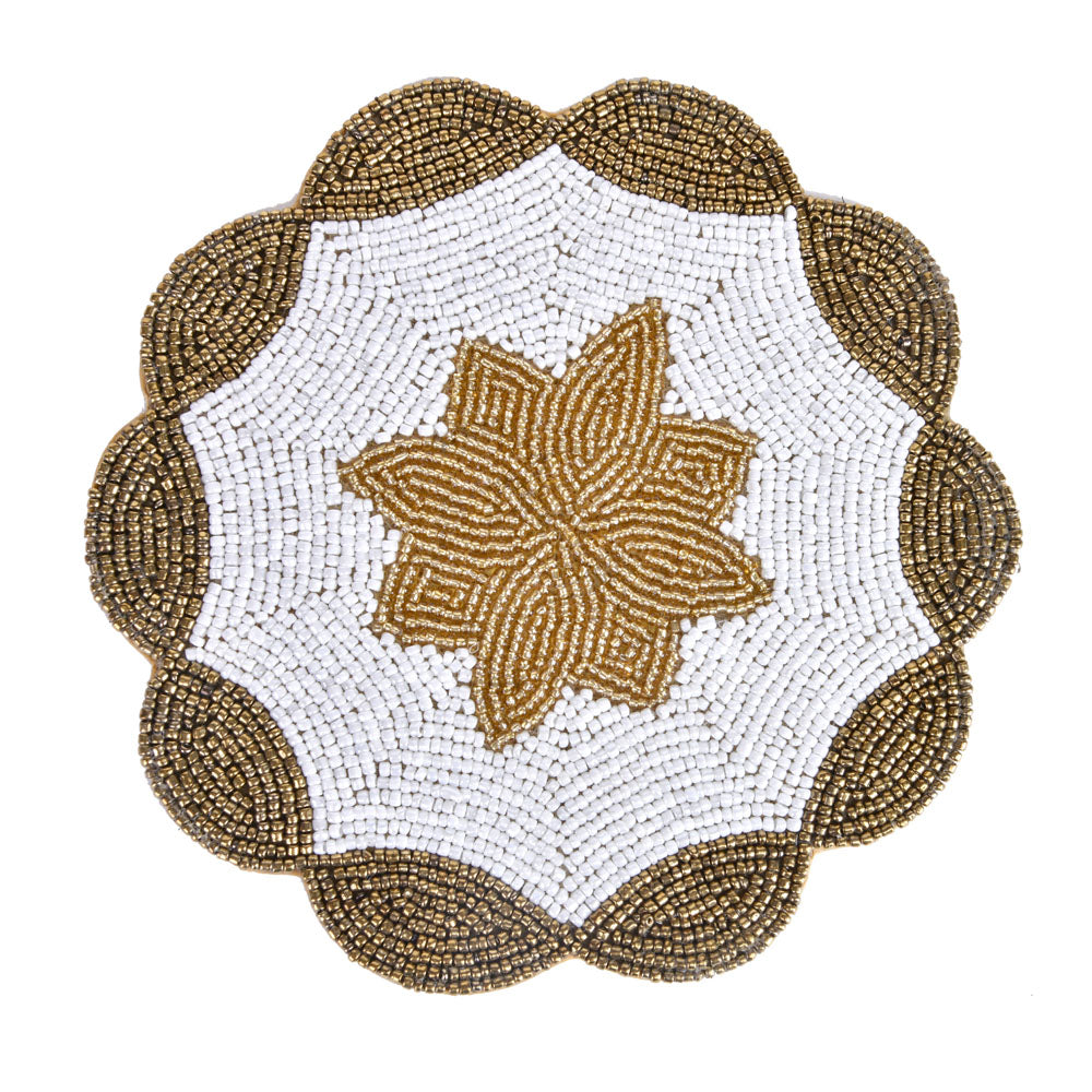 Decorative Floral Beaded Trivet (Gold & Off White)
