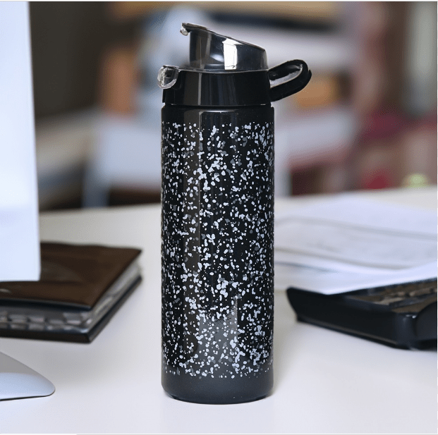 Sip water from the appealing Granite Print Sports Bottle from Nilkamal Homes. With premium plastic construction, this ergonomically designed bottle offers a spacious 750-ml capacity and a comfortable grip. The granite print adds style. Its flip-up plastic cap ensures spill-free and leak-free convenience. You can get this Granite Print Sports bottle for your gym, college, office, or while travelling. Get yours today.