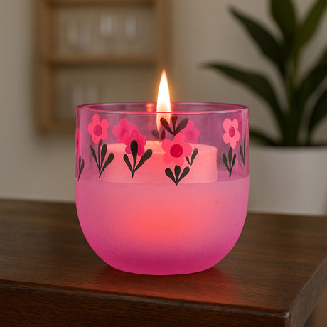 In-store ExclusiveHand-Painted Floral Glass Votive Candle Stand- Pink