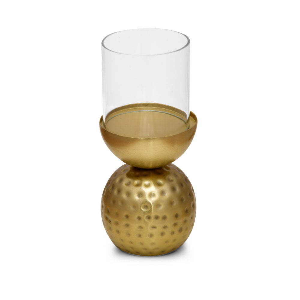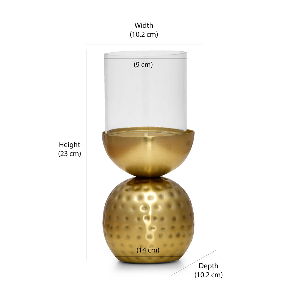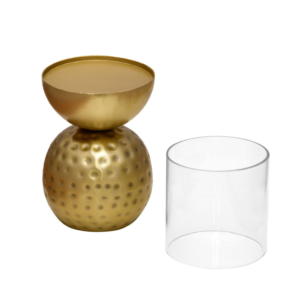 Decorative Round Hammered Base Metal & Glass Candle Holder (Gold)