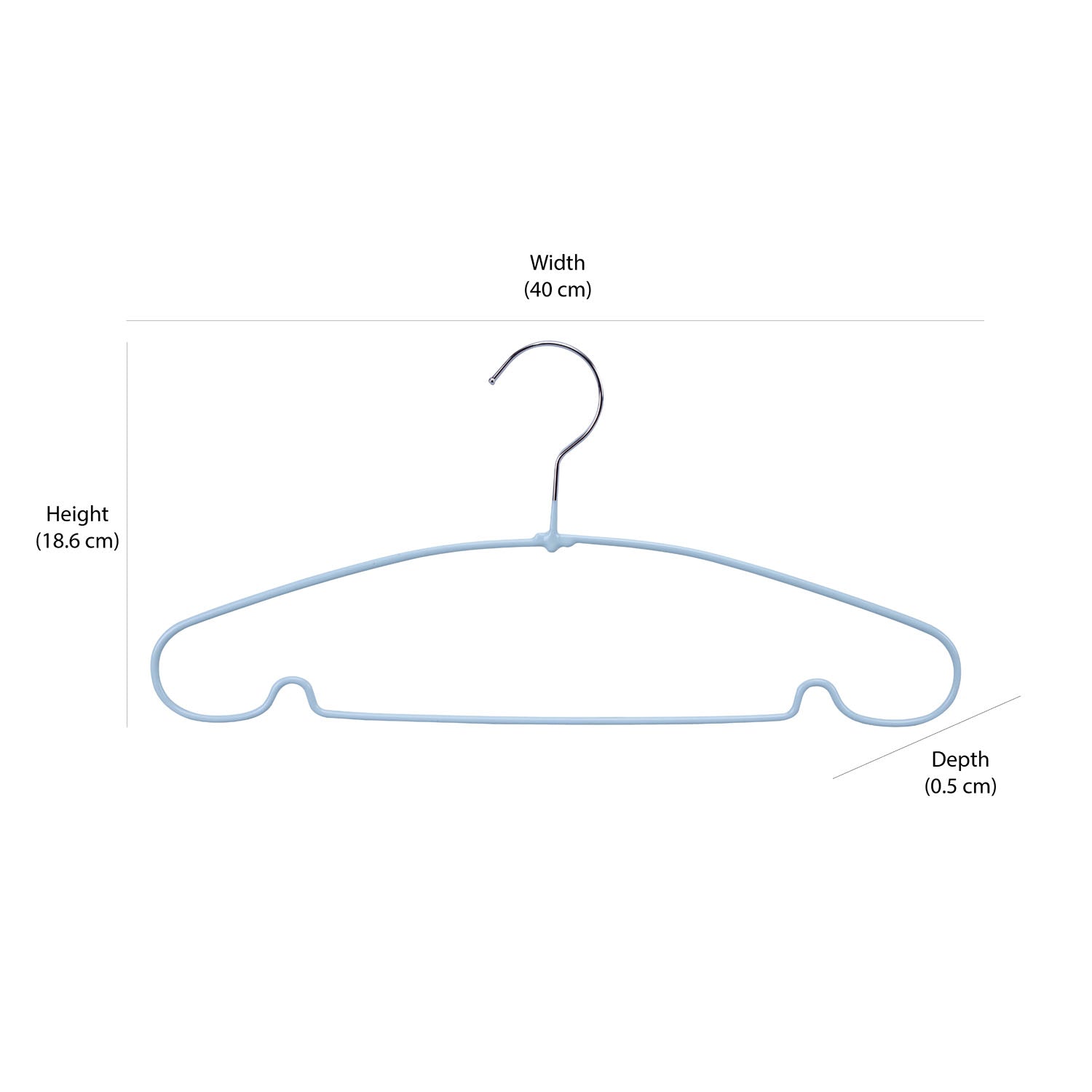 This set of 10 mint blue hangers from Nilkamal Homes combines practicality and style. Constructed with metal and PVC, these hangers feature lower grooves for extra functionality. Their slim design not only saves space but also elevates the organisation of your wardrobe.