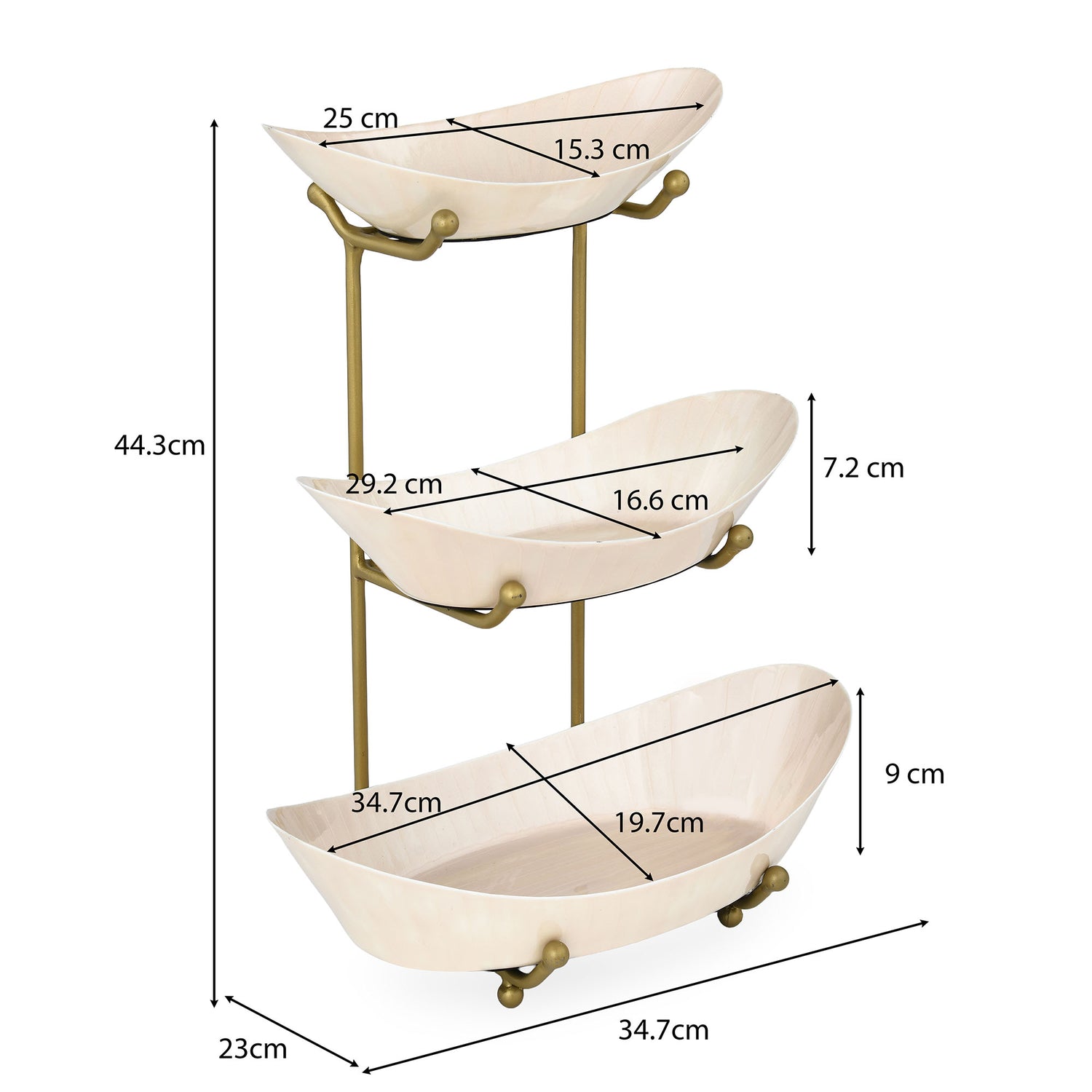 The Nilkamal Homes Fruit Stand offers a perfect mix of durability and elegance. Designed with three tiers of boat-shaped trays, it allows you to store and display fruits in an organised way while saving counter space. The soft beige trays paired with golden-toned rods bring a refined touch that blends well with modern or classic kitchens. Built with a strong iron frame, it is suitable for everyday use. Beyond fruits, it can also be used to hold vegetables, bread, or even snacks, making it a versatile addition to your home.