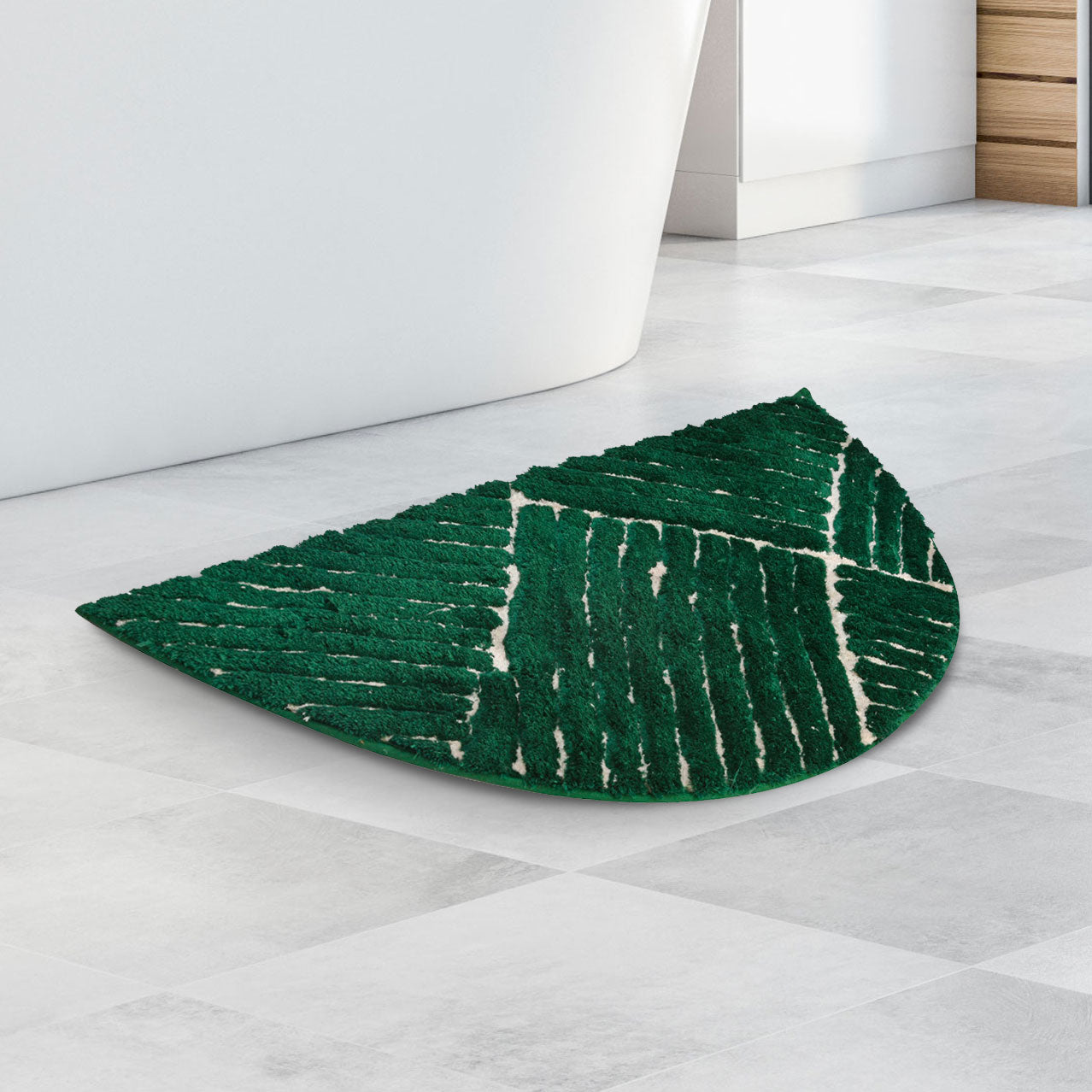Abstract D Shaped Polyester 16" x 31" Anti Skid Bath Mat (Green)