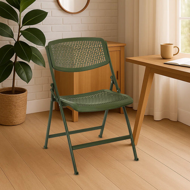 The Nilkamal Homes Aero Folding Chair combines contemporary design with everyday functionality, adding elegance to any living space. Its versatile mesh pattern promotes airflow and suits a wide range of occasions, while the ergonomic seat and backrest offer lasting comfort. You can easily fold and store the chair, saving space when not in use. Crafted from high-quality metal and durable polypropylene, it features a powder-coated metal frame with a matte finish that ensures long-lasting durability.