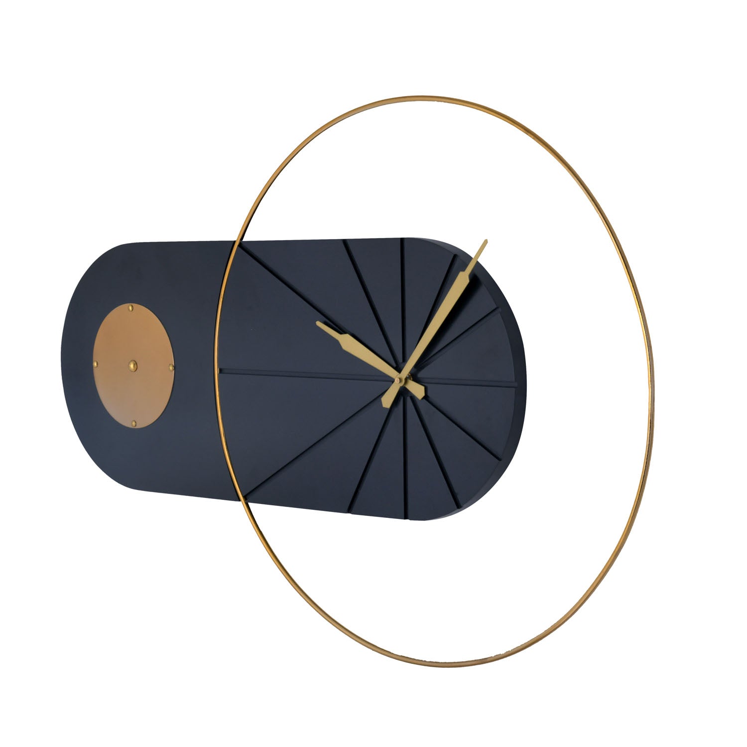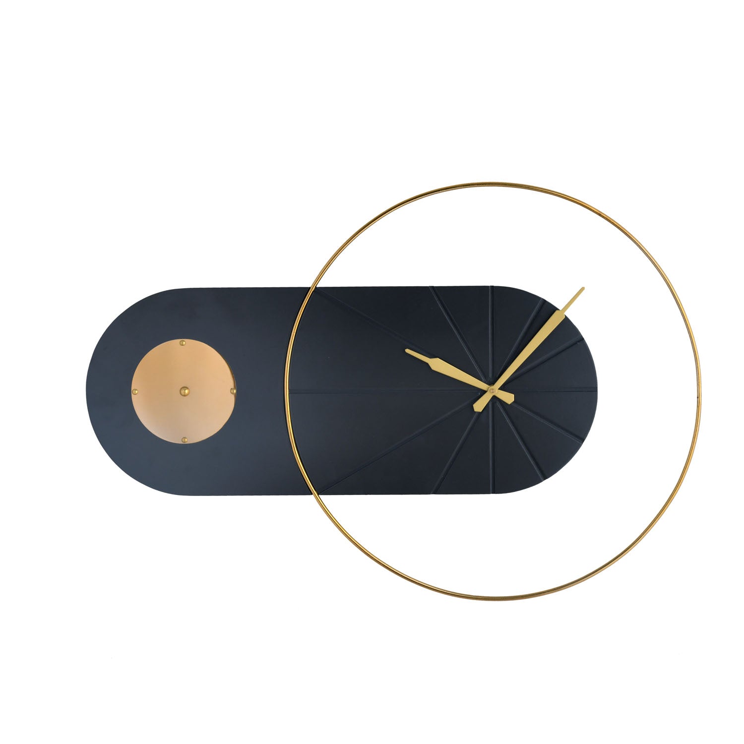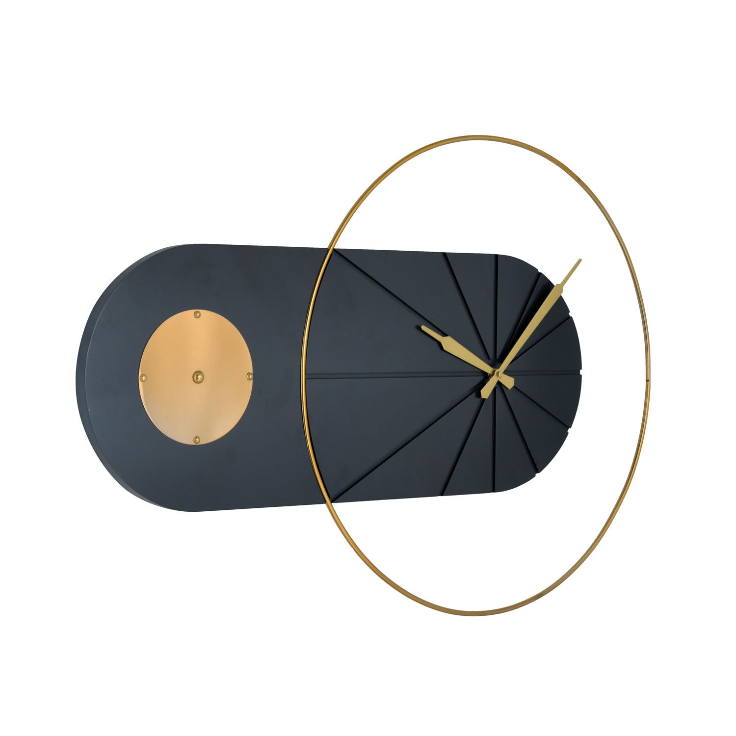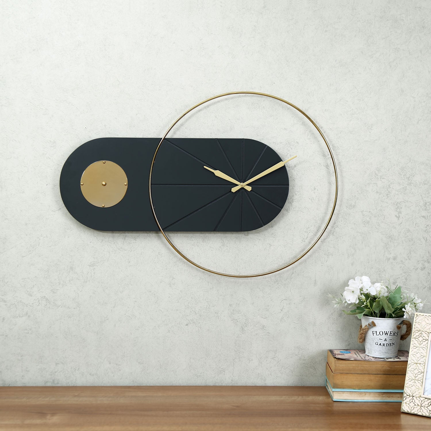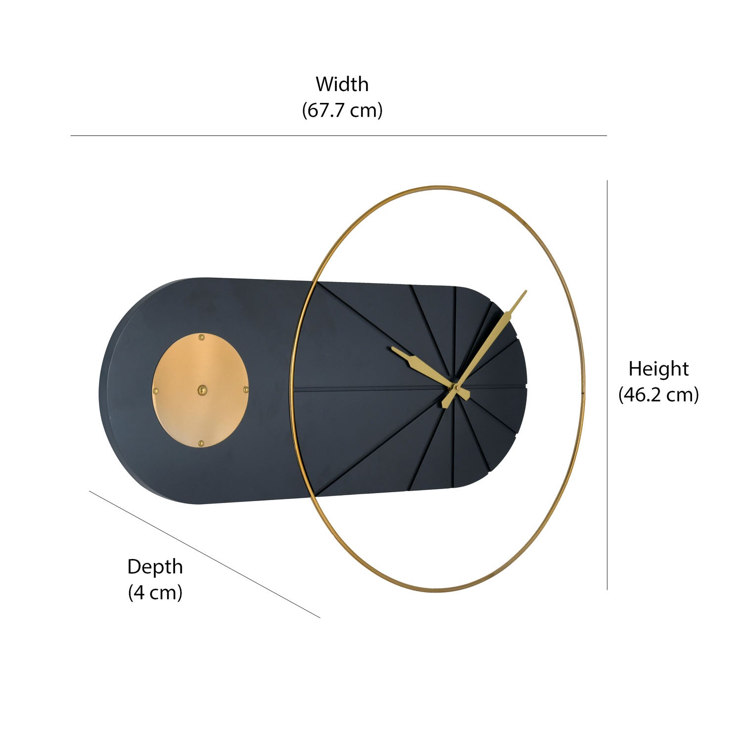 Arch Oval Wooden & Metal Wall Clock (Black & Gold)