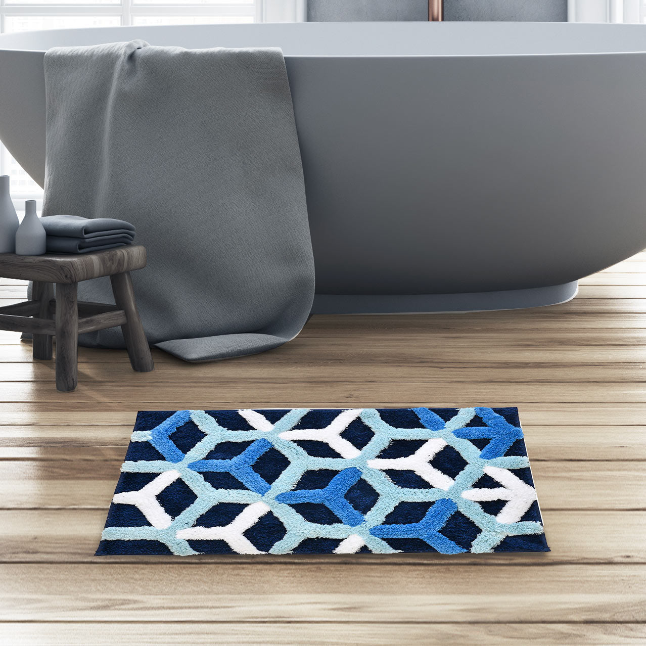 Ariana Abstract Polyester 20" x 30" Anti Skid Bath Mat (Navy)