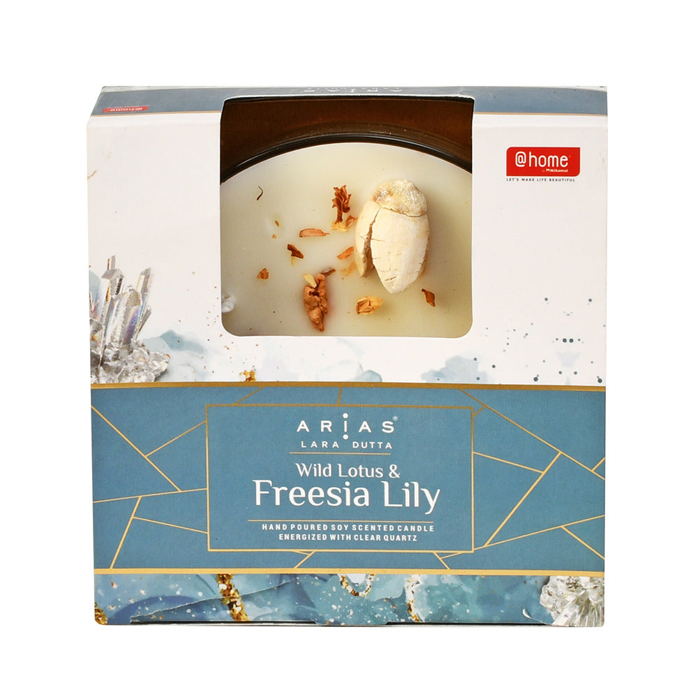 Fill your room with the soul-soothing aroma of the Nilkamal Homes ARIAS by Lara Dutta scented candles. This soy and palm wax candle, placed in a glass bowl, emits a lovely fragrance of wild lotus and freesia lily for 20 hours. Its pleasant aroma is ideal for experiencing relaxing aromatherapy in the comfort of your own home. Get the ARIAS by Lara Dutta candles for yourself or a loved one today.