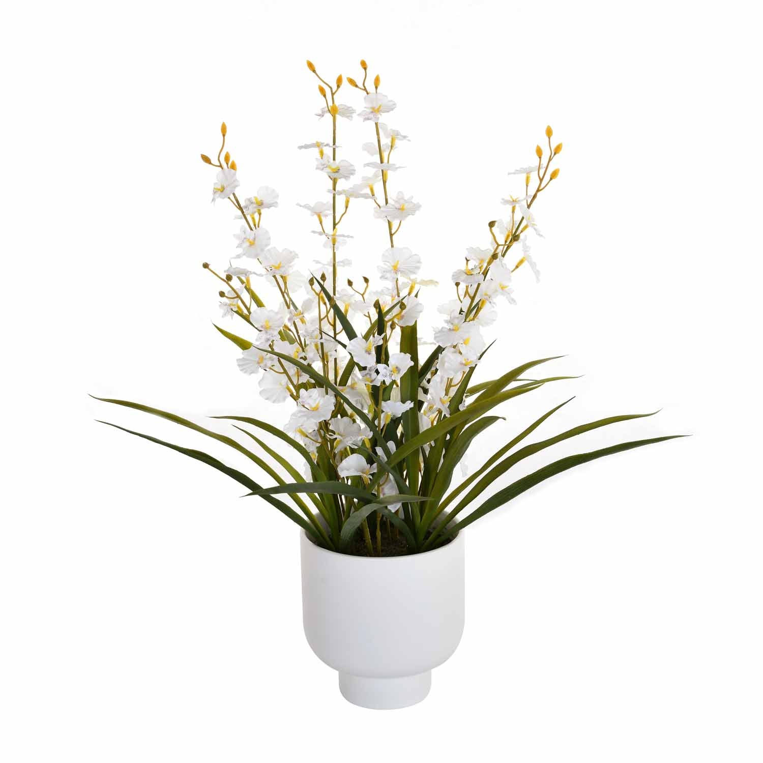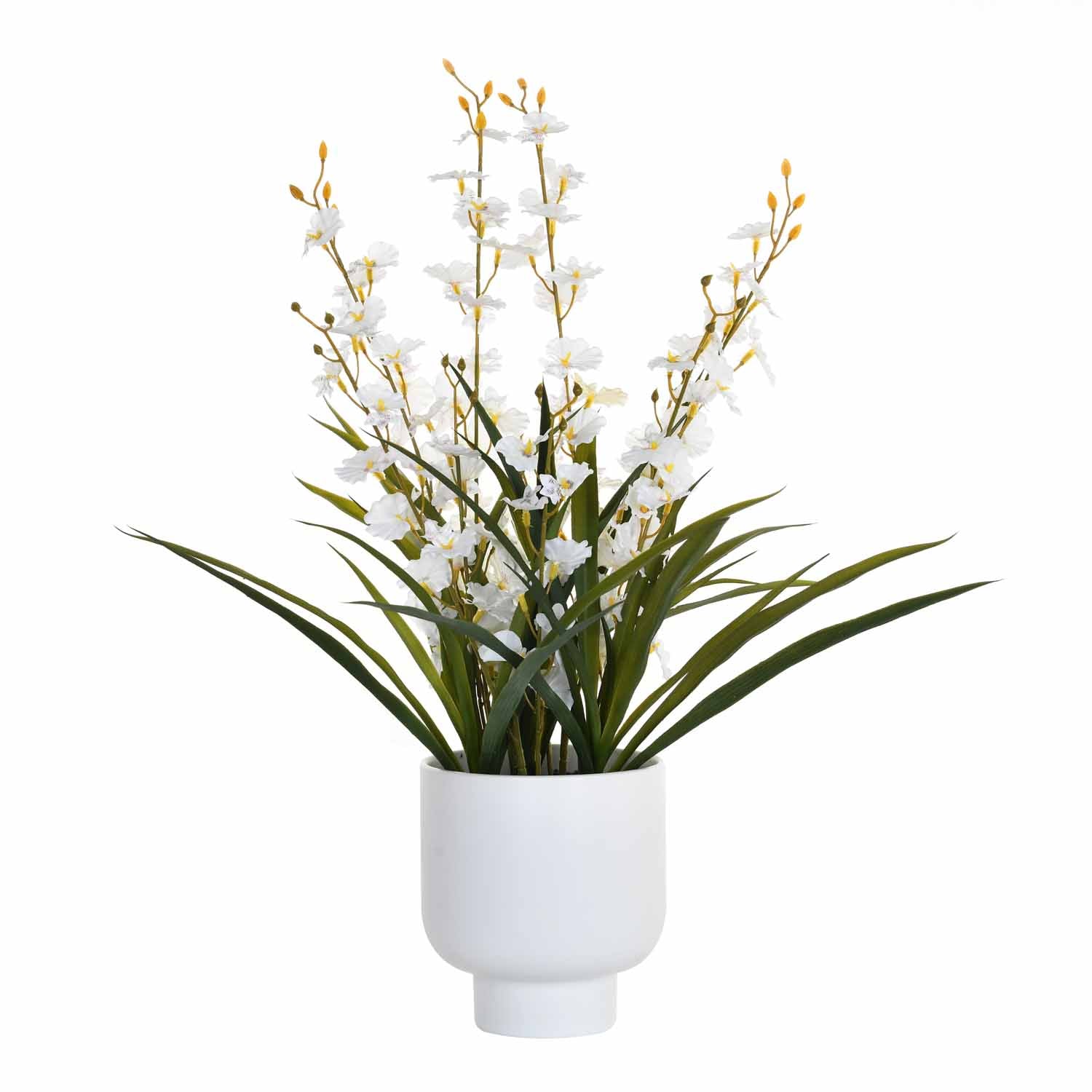 Artificial Orchid Flower Ceramic Potted Plant - White