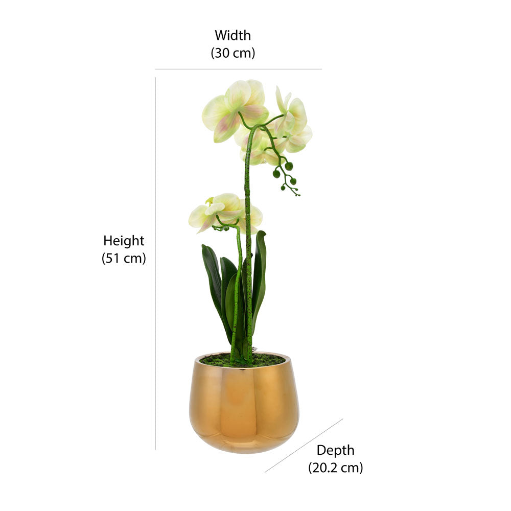Enhance your living space with the Nilkamal Homes Artificial Orchid Plant With Pot, expertly crafted from durable polyethylene to ensure long-lasting usage. Its meticulous design provides a realistic appearance that elevates any environment. This lifelike artificial orchid plant, paired with a pot brings the touch and feel of nature into your decor, adding greenery to any room. It requires minimal maintenance and no watering or upkeep. Enjoy the beauty of lush greenery year-round, regardless of the season. Plants such as this can embellish living rooms, offices, hallways, and reception areas.