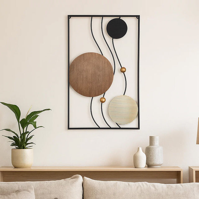 The Nilkamal Homes Cirque Panel Wall Décor in black and brown brings architectural rhythm to your interiors with its striking circular pattern. Combining metal with wood, it offers an artful interplay between precision and texture. Its geometric form draws attention while maintaining balance, making it the perfect centrepiece for modern living spaces, office walls, or statement corridors.