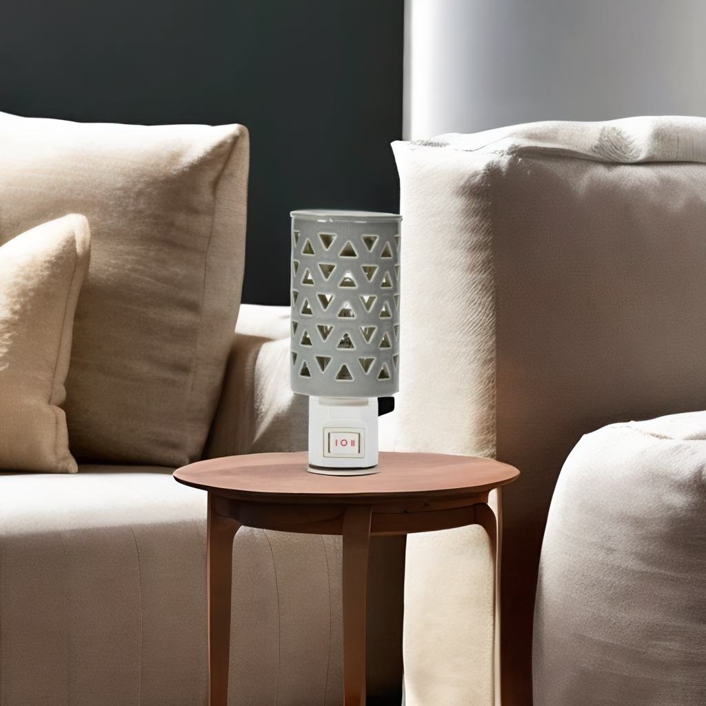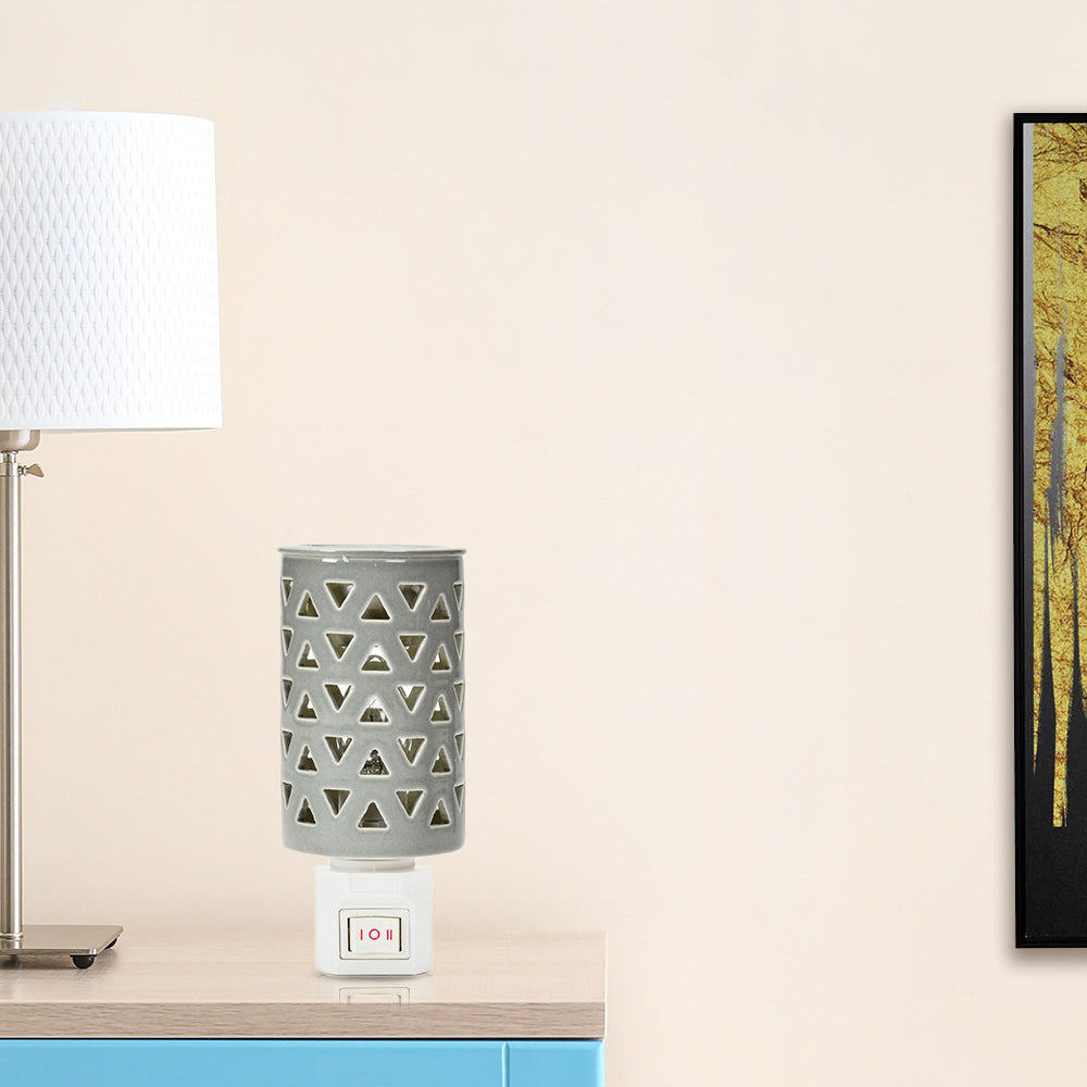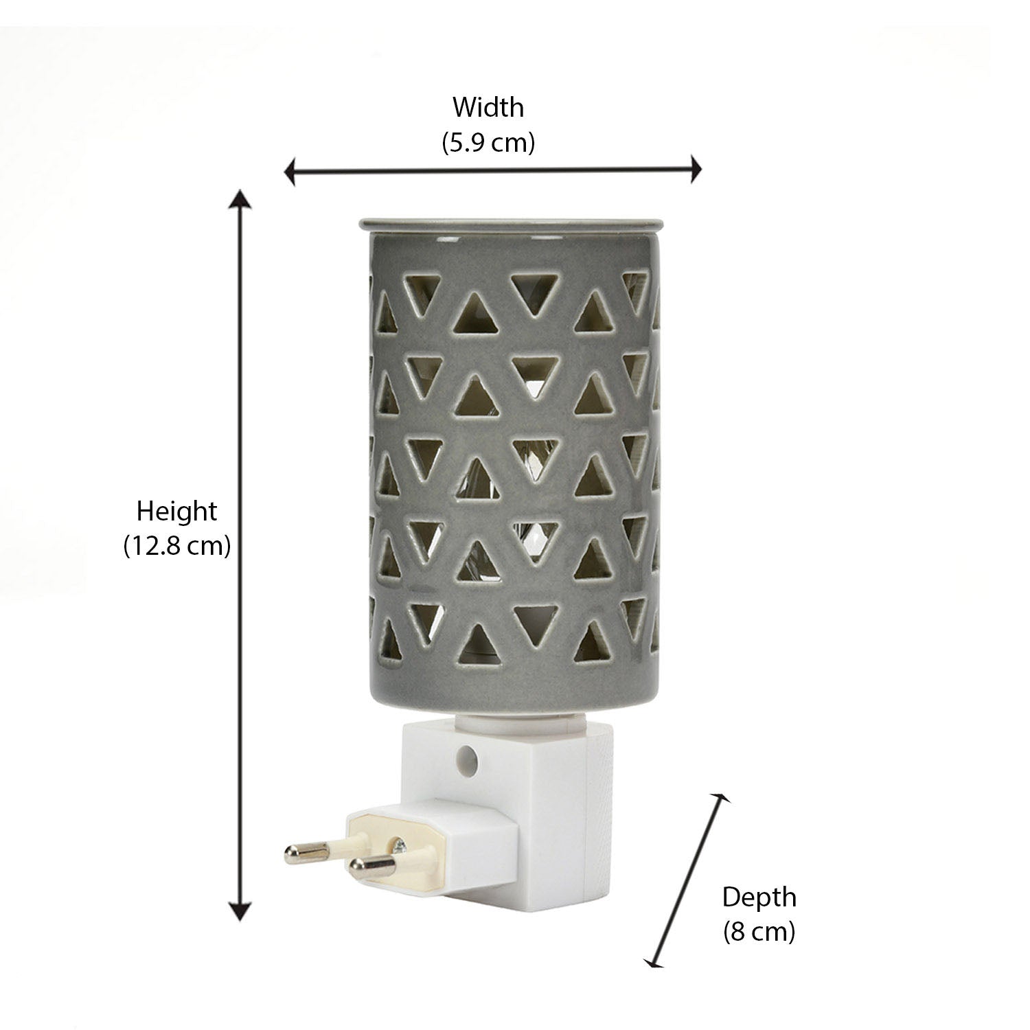Warm up your ambience with mood lighting, a shadow effect, and a pleasant aroma with the Cylindric Electric Diffuser. This elegantly electric plugin diffuser, made from porcelain, has triangular cutouts that lend an aesthetic appeal to the diffuser. When turned on, the bulb inside the diffuser casts a shadow on your room for a mesmerizing effect. You can enhance this welcoming feel by adding aroma oils or wax melts to the diffuser top. So this Cylindrical Electric Diffuser elevates your home with warm lighting and soothing aromatherapy, making it ideal for meditation, yoga, and relaxation. If you want your home, office, or spa to feel peaceful, this plugin diffuser is for you.