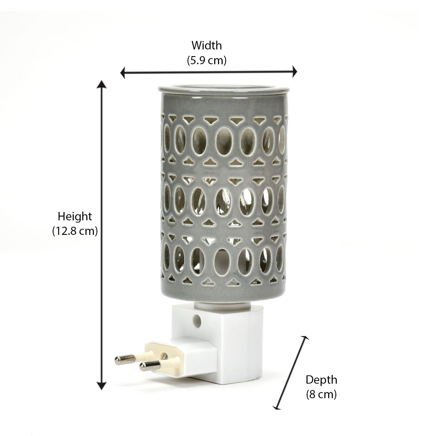 Warm up your ambience with mood lighting, a shadow effect, and a pleasant aroma with the Cylindric Electric Diffuser. This elegantly electric plugin diffuser, made from porcelain, has patterned cutouts that lend an aesthetic appeal to the diffuser. When turned on, the bulb inside the diffuser casts a shadow on your room for a mesmerizing effect. You can enhance this welcoming feel by adding aroma oils or wax melts to the diffuser top. So this Cylindric Electric Diffuser elevates your home with warm lighting and soothing aromatherapy, making it ideal for meditation, yoga, and relaxation. If you want your home, office, or spa to feel peaceful, this plugin diffuser is for you.