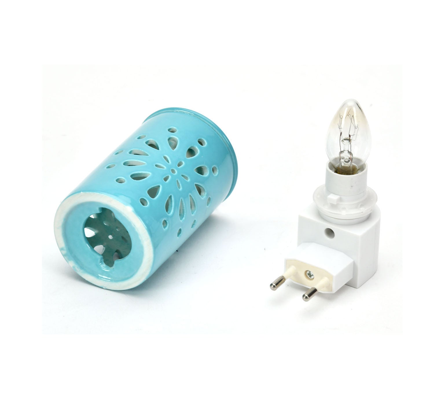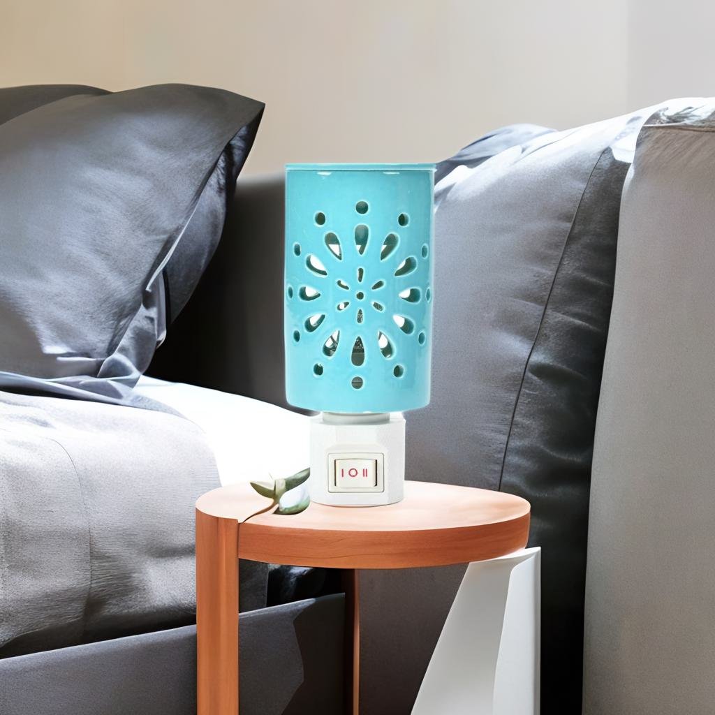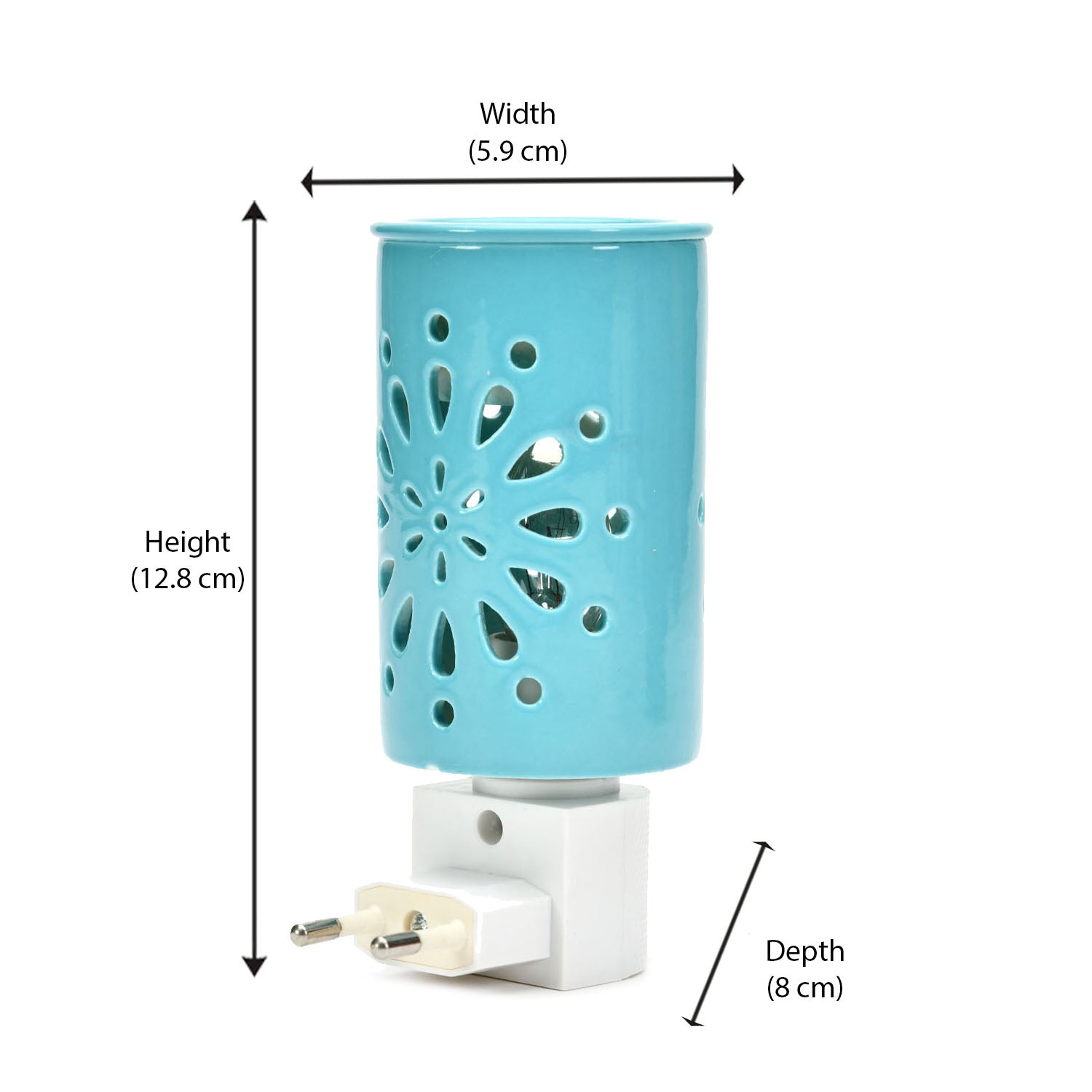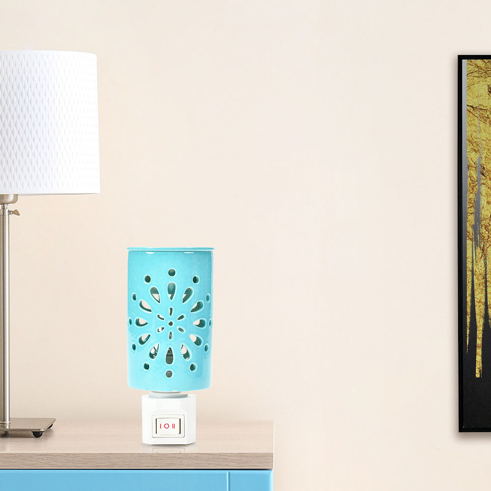 Warm up your ambience with mood lighting, a shadow effect, and a pleasant aroma with the Cylindric Electric Diffuser. This elegantly electric plugin diffuser, made from porcelain, has patterned cutouts in a serene sea-green colour that lends an aesthetic appeal to the diffuser. When turned on, the bulb inside the diffuser casts a shadow on your room for a mesmerizing effect. You can enhance this welcoming feel by adding aroma oils or wax melts to the diffuser top. So this Cylindric Electric Diffuser elevates your home with warm lighting and soothing aromatherapy, making it ideal for meditation, yoga, and relaxation. If you want your home, office, or spa to feel peaceful, this plugin diffuser is for you.
