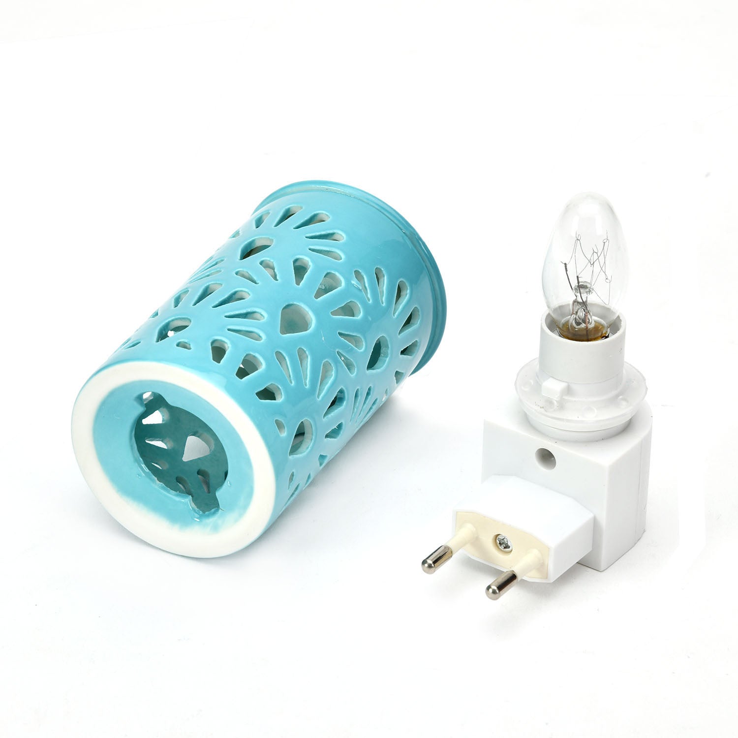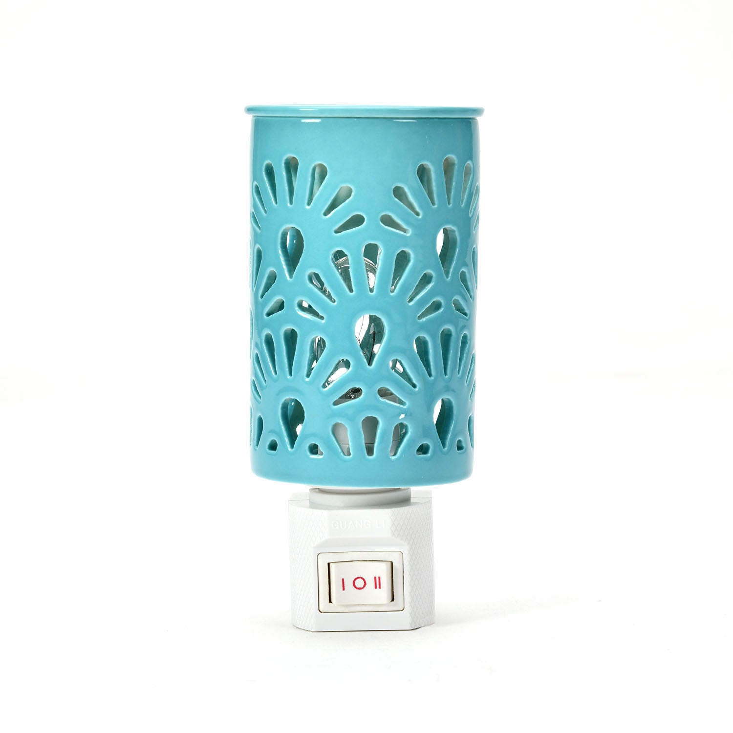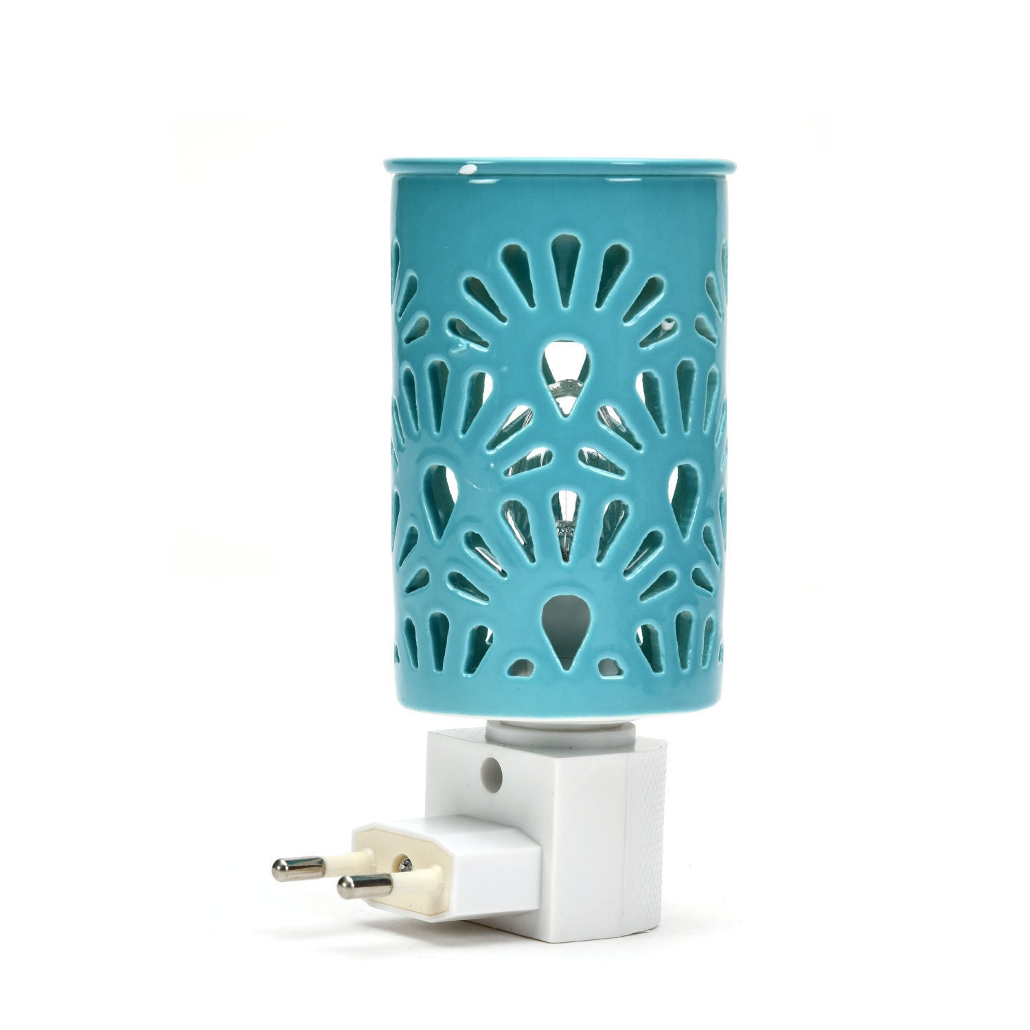 Warm up your ambience with mood lighting, a shadow effect, and a pleasant aroma with the Cylindric Electric Diffuser. This elegantly electric plugin diffuser, made from porcelain, has patterned cutouts in a serene sea-green colour that lends an aesthetic appeal to the diffuser. When turned on, the bulb inside the diffuser casts a shadow on your room for a mesmerizing effect. You can enhance this welcoming feel by adding aroma oils or wax melts to the diffuser top. So this Cylindric Electric Diffuser elevates your home with warm lighting and soothing aromatherapy, making it ideal for meditation, yoga, and relaxation. If you want your home, office, or spa to feel peaceful, this plugin diffuser is for you.