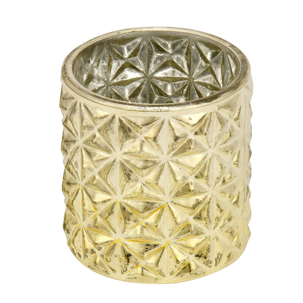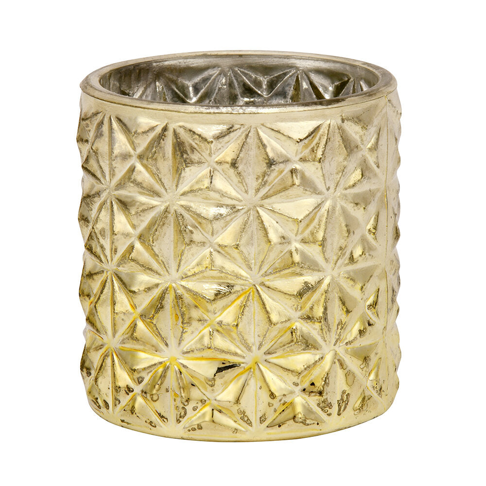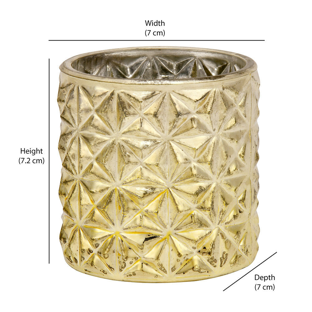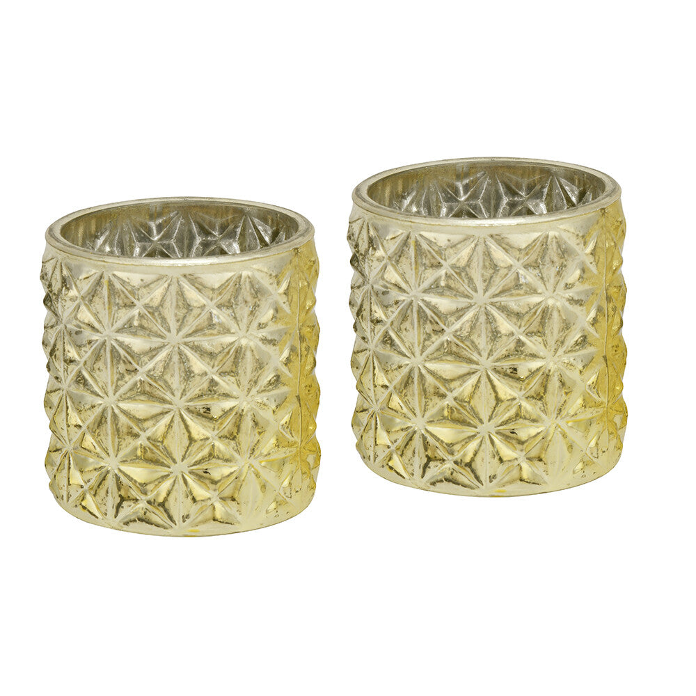 Decorative Cylindrical Glass Votive Set of 2 (Gold)