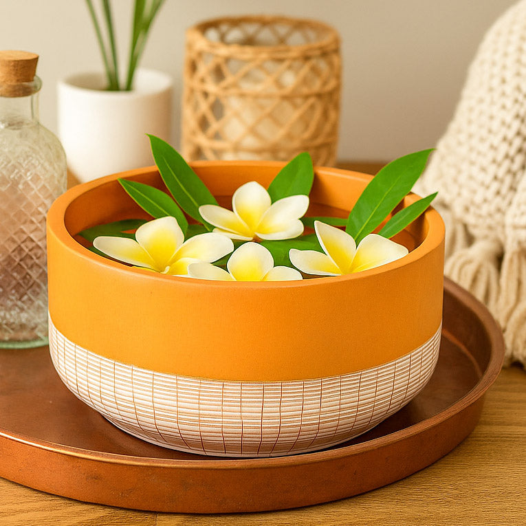 The Nilkamal Homes Decorative Urli in a brown and white dual tone makes a bold yet elegant statement in any space. Featuring a classic form with a modern checkered twist, it adds artisanal depth to console setups or festive displays. Made from solid mango wood, this piece blends earthy tones with timeless craftsmanship—ideal for styling with candles, petals, or as a visual centrepiece.
