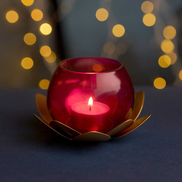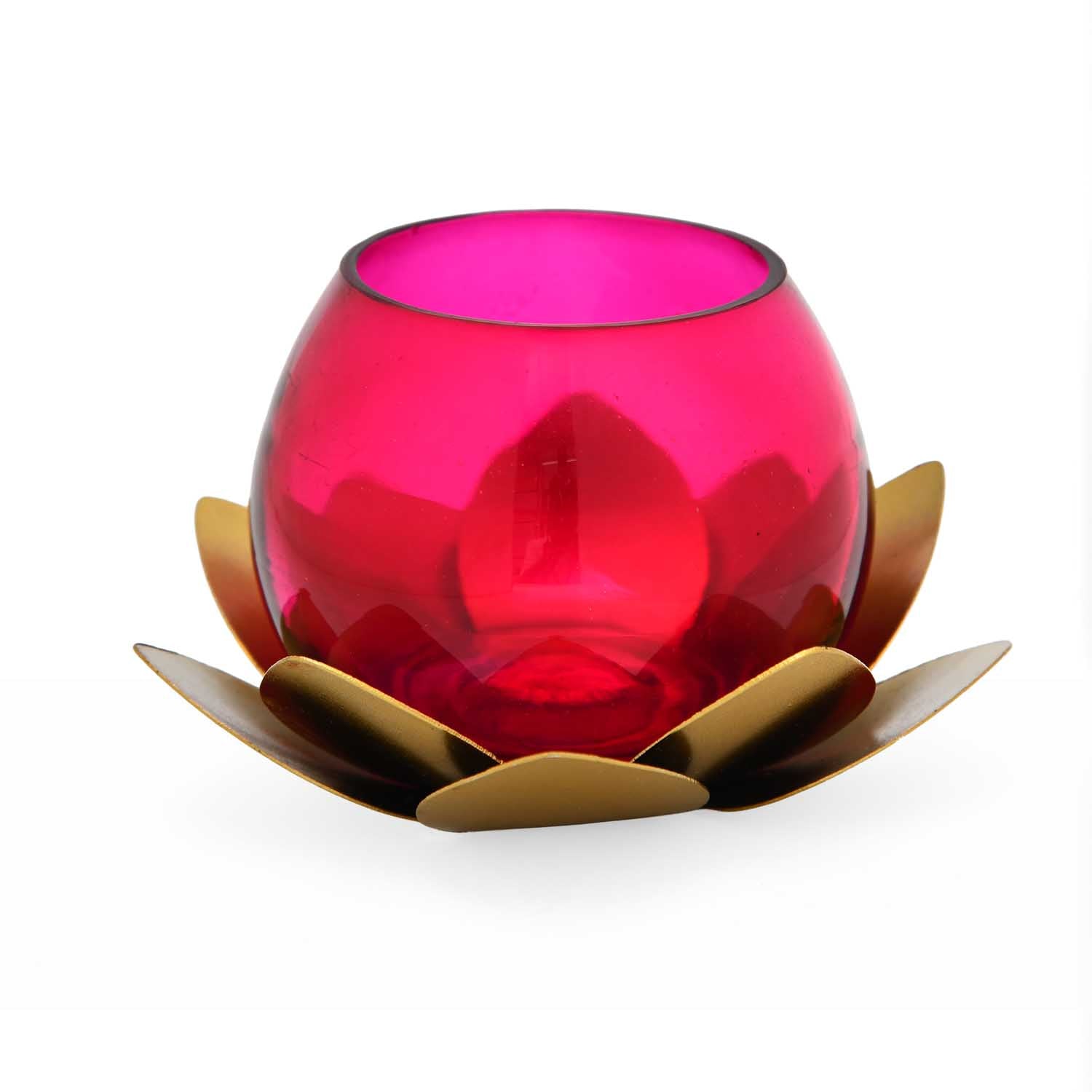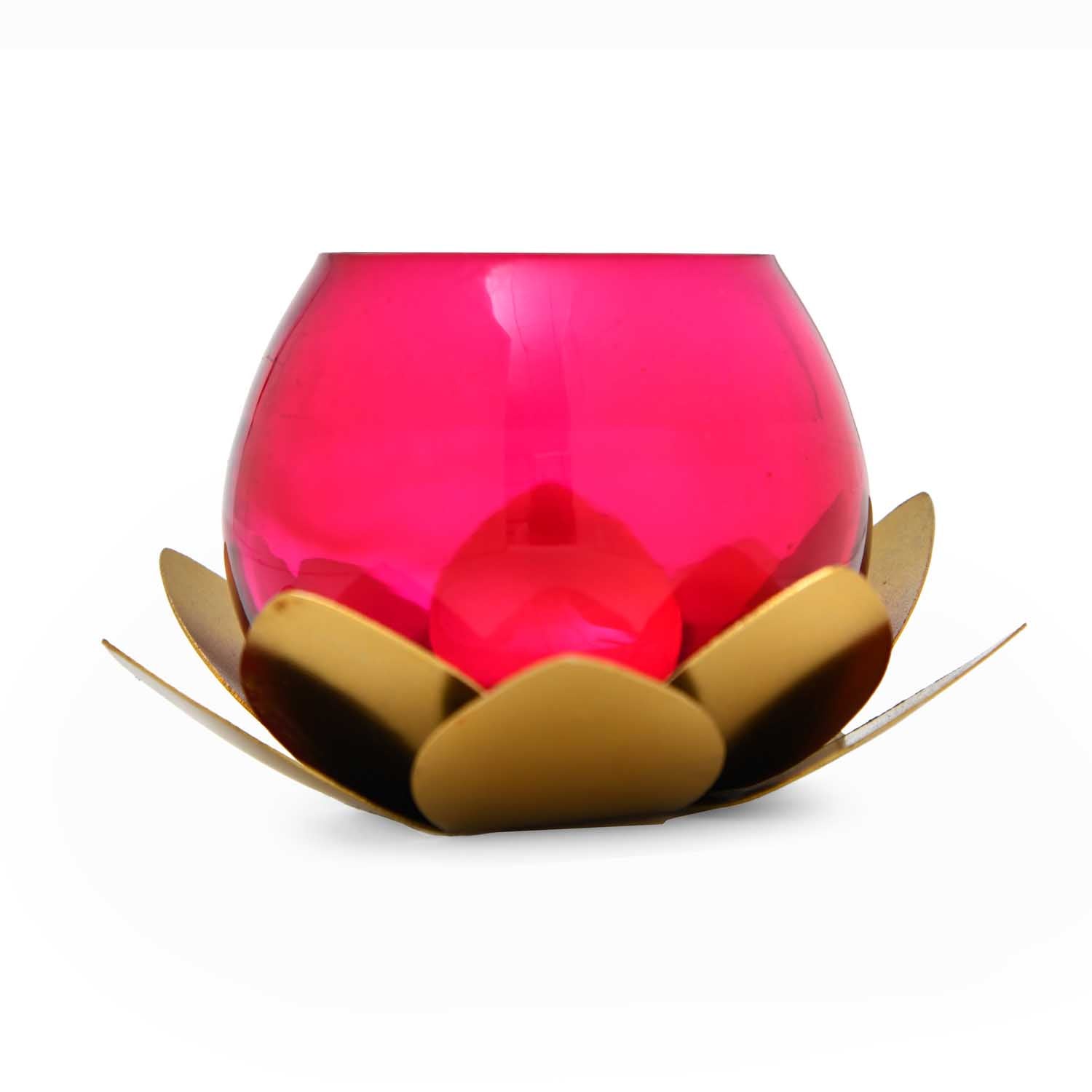 Decorative Mini Lotus Votive Candle Stand- Pink