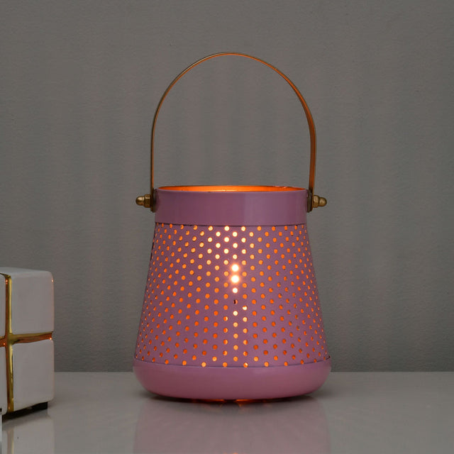 Decorative Modern Trapeze Metal Lantern- Pink