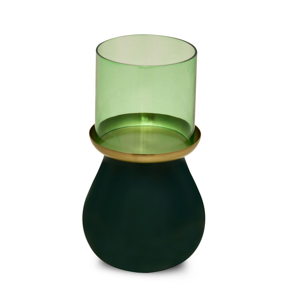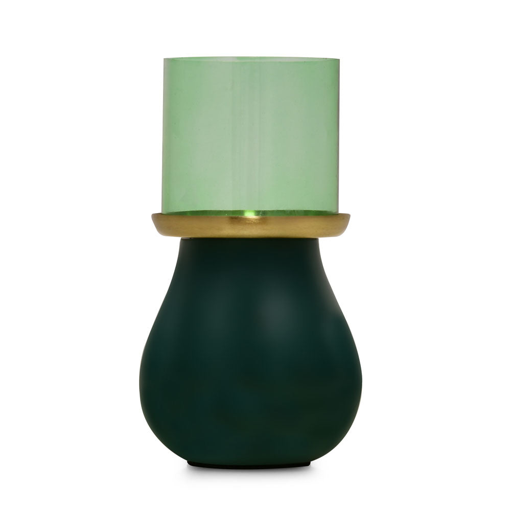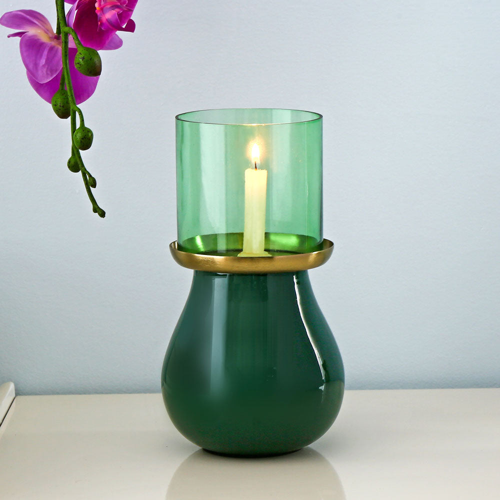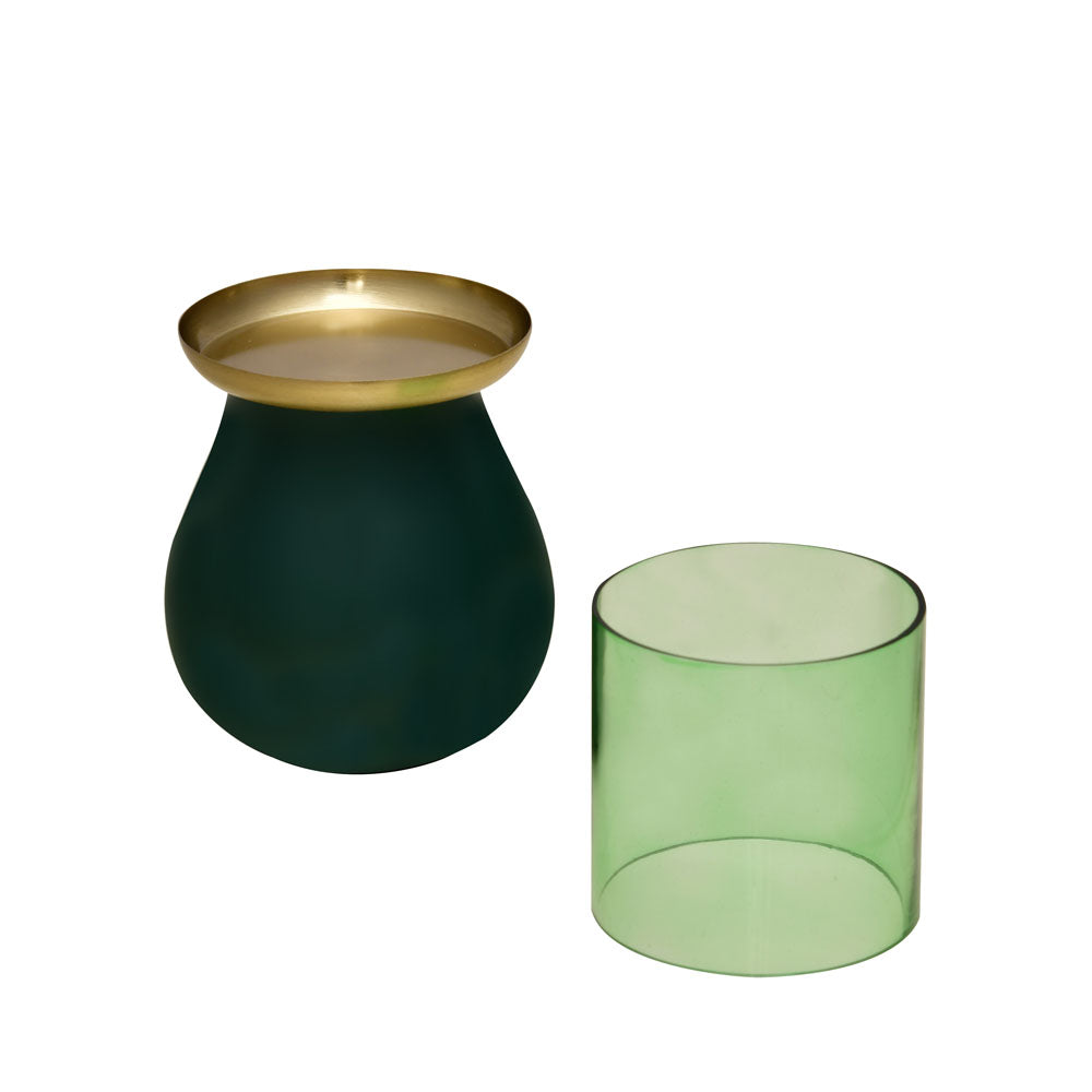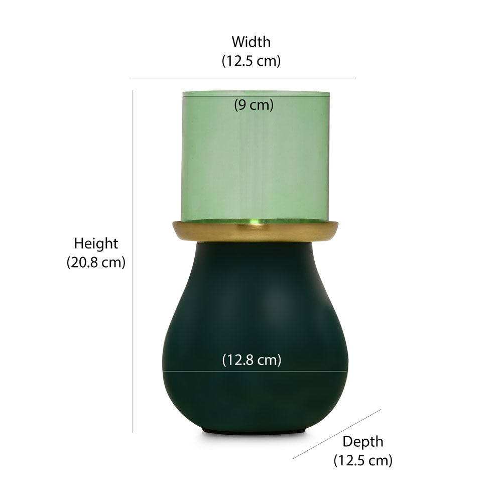 Decorative Oval Base Metal & Glass Candle Holder (Green)