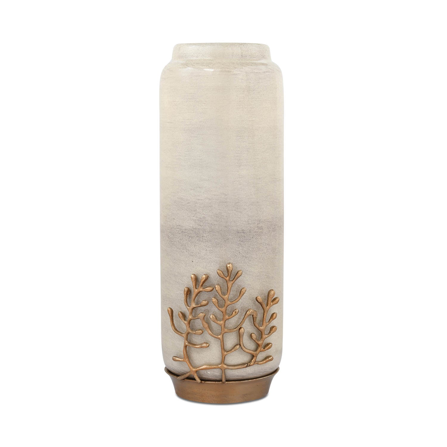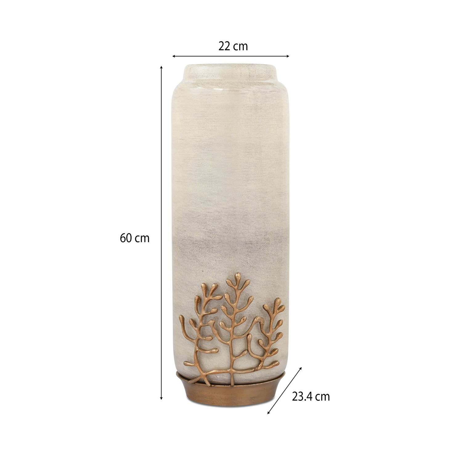 Decorative Tall Floor Vase with Golden Branch- Beige and Gold