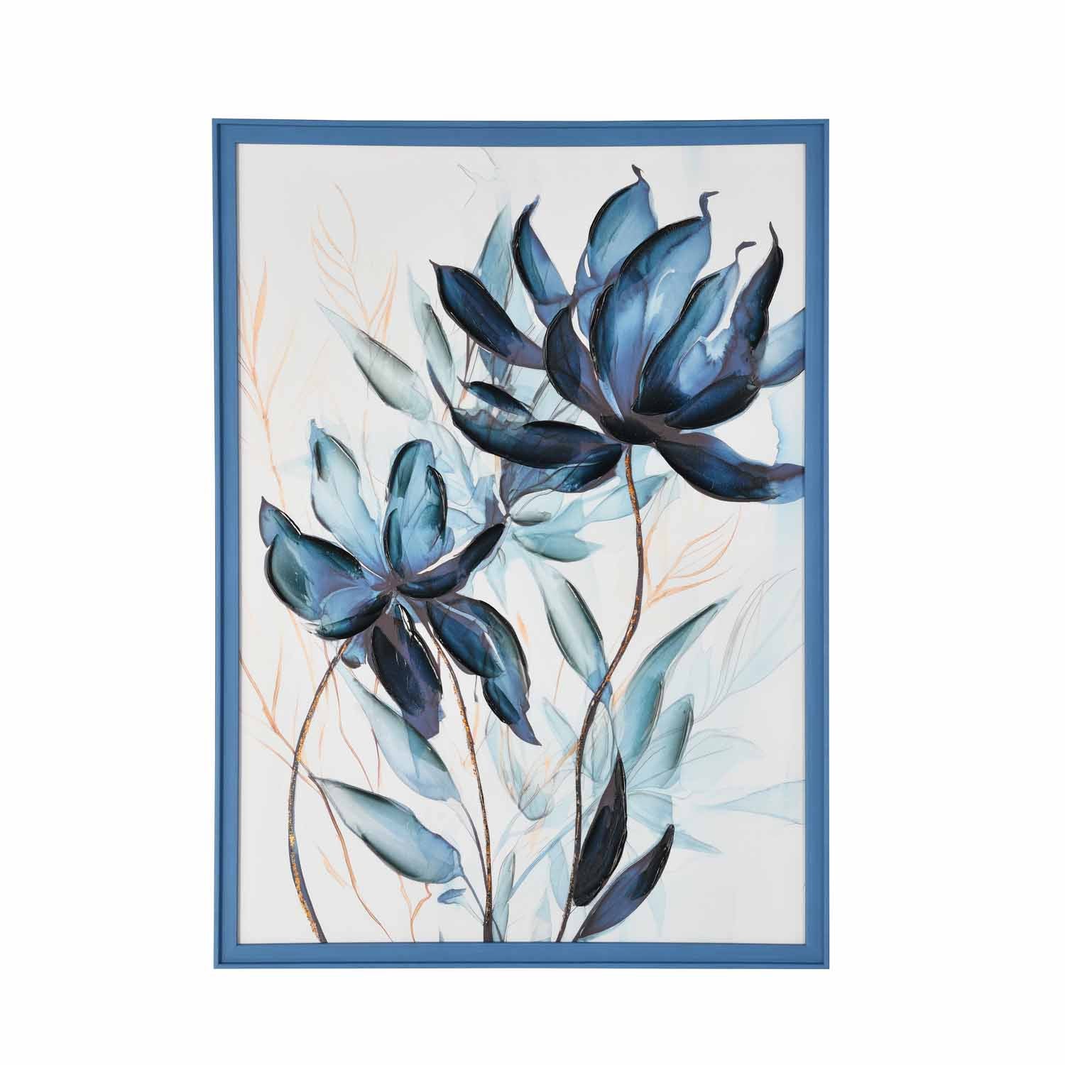 Floral Art - I Canvas Painting- Blue and White