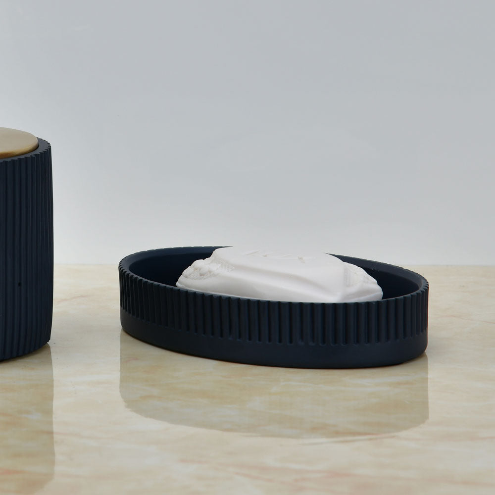 Fluted Design Polyresin Oval Soap Dish (Grey)