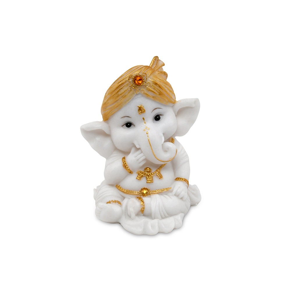 Ganesha Giggling Decorative Polyresin Showpiece (White & Gold)