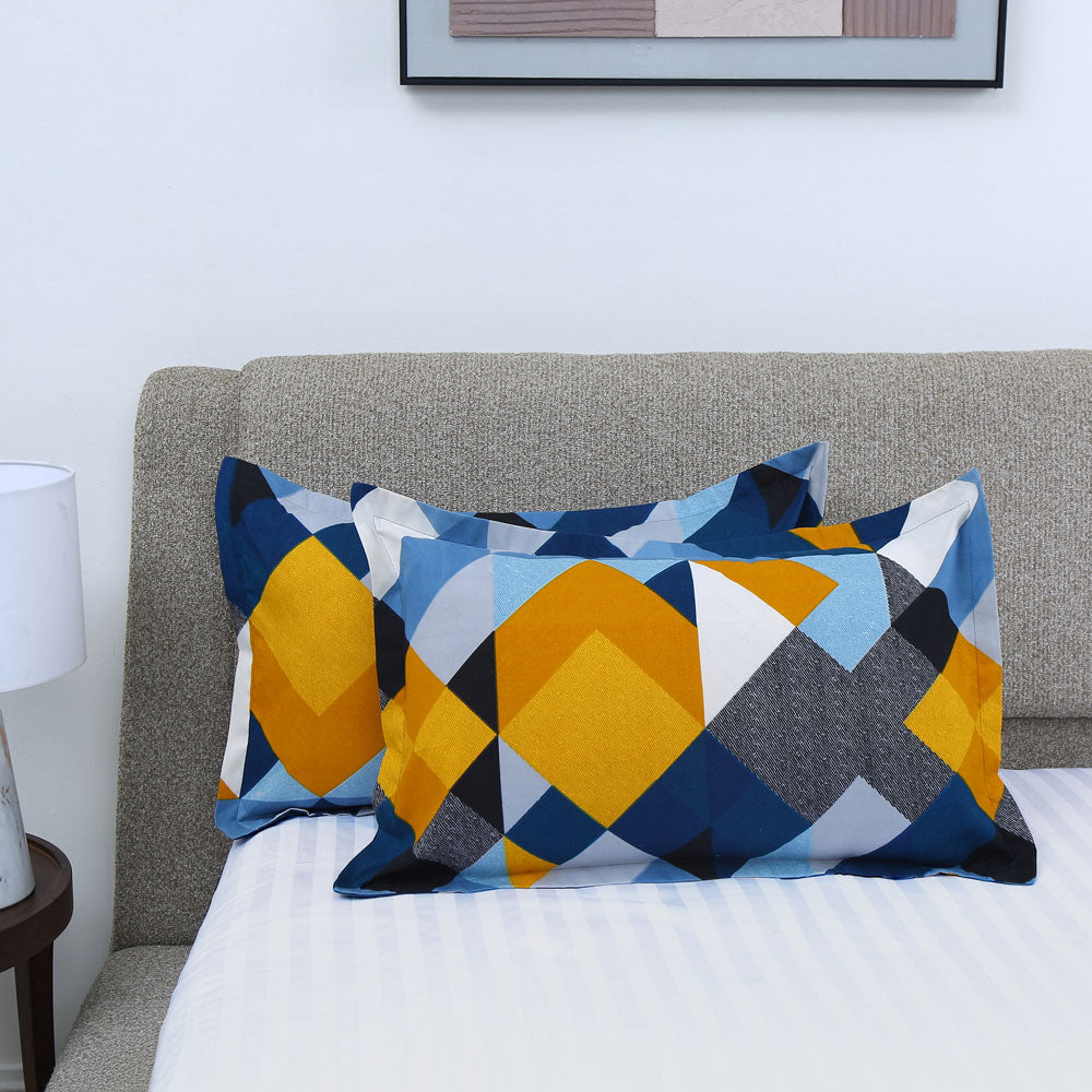 Upgrade your bedding with the Nilkamal Homes Pillow Covers Set in a vibrant orange and blue combination, designed to bring a pop of colour to your space. These covers, sized at 17" x 27", are made from soft microfiber fabric that offers a gentle touch. The bold geometric designs add a touch of artistic flair to your bedding setup, making these covers a perfect fit for those seeking modern design. Each set includes two pillow covers for a coordinated look, featuring a flap closure that allows for easy pillow insertion and removal. These stylish pillow covers are an ideal blend of beauty and practicality for your home.