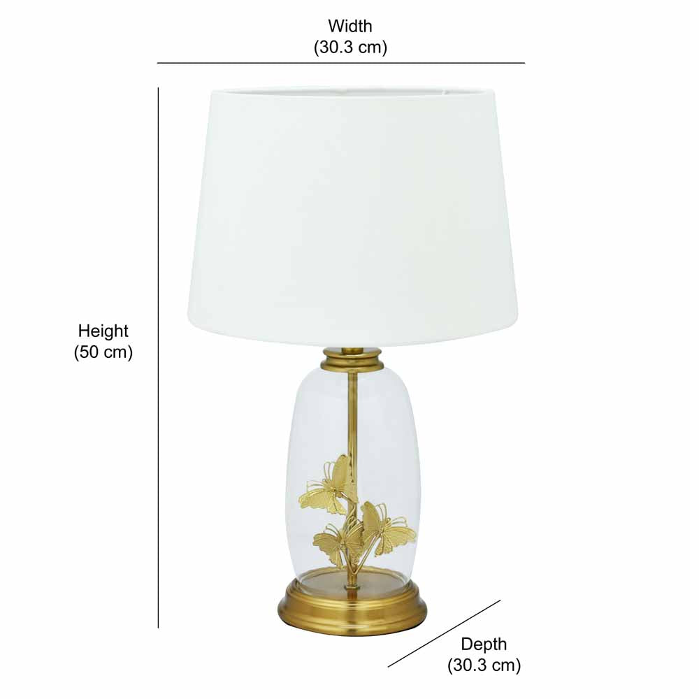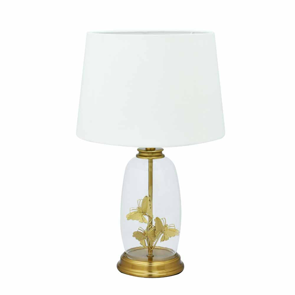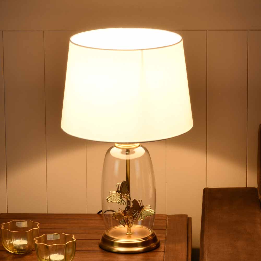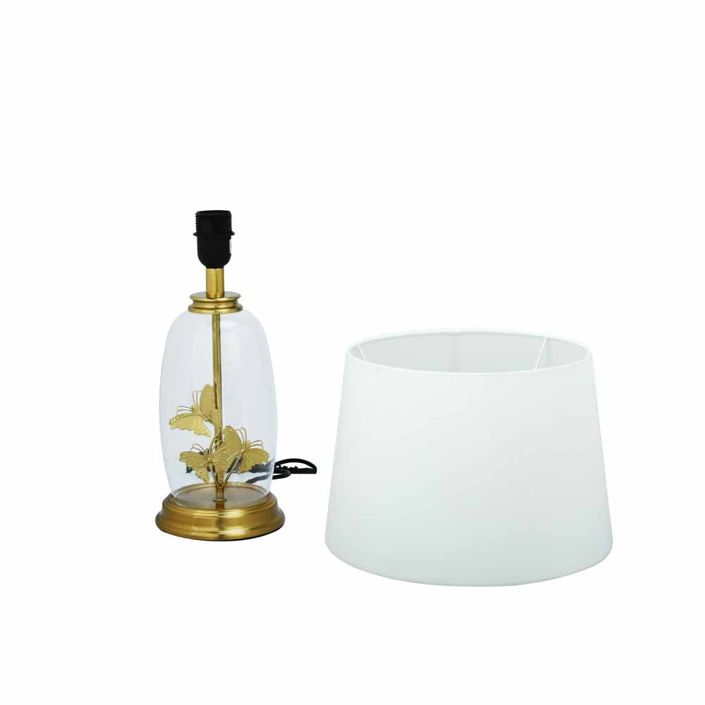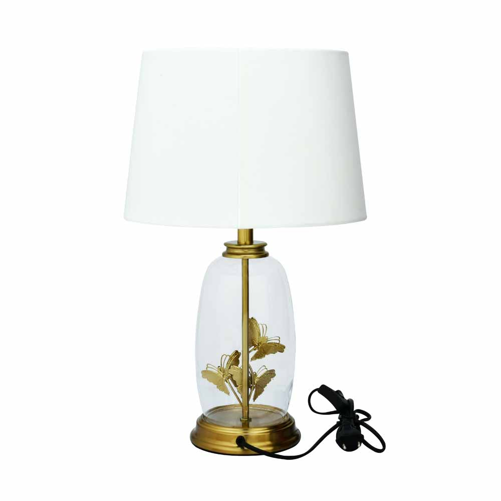Glassio Butterfly Fabric Shade Glass & Metal Base Table Lamp (Gold)