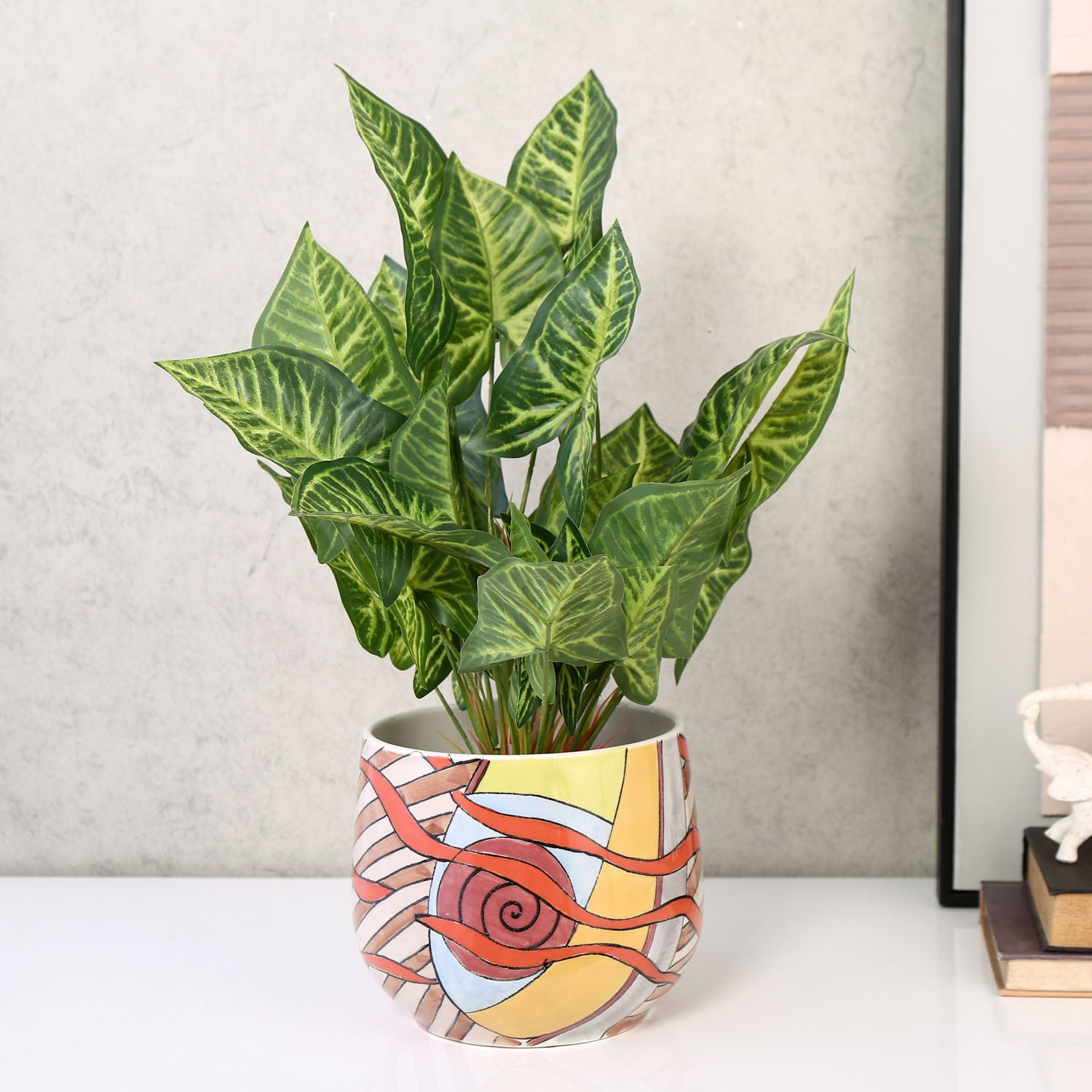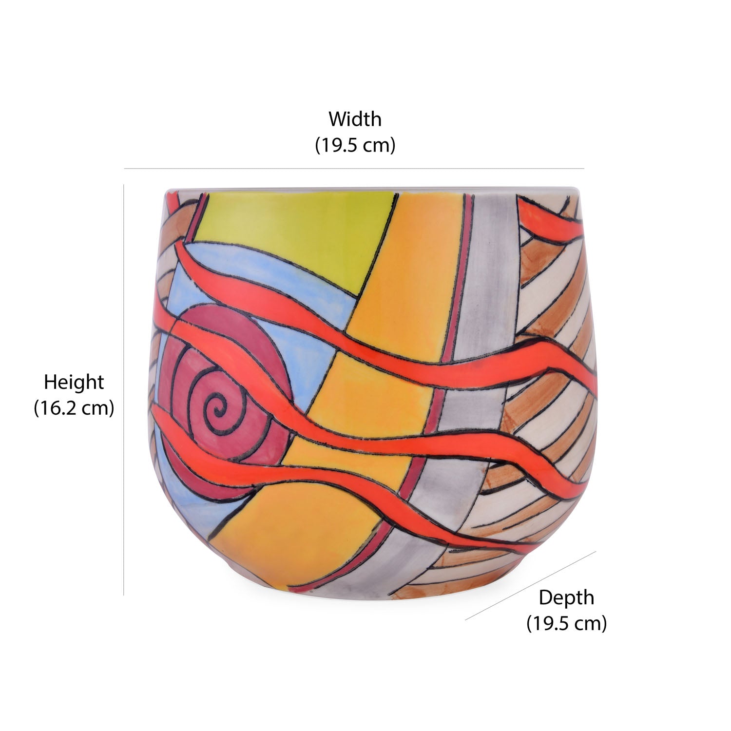 Hand Painted Ceramic Bowl Planter (Multicolor)
