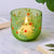 Hand-Painted Leaf Design Glass Votive Candle Stand- Green