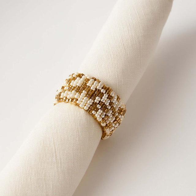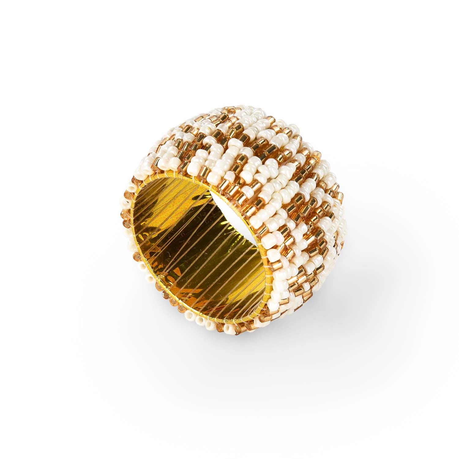 Leaf Beaded Napkin Rings Set of 4- Gold