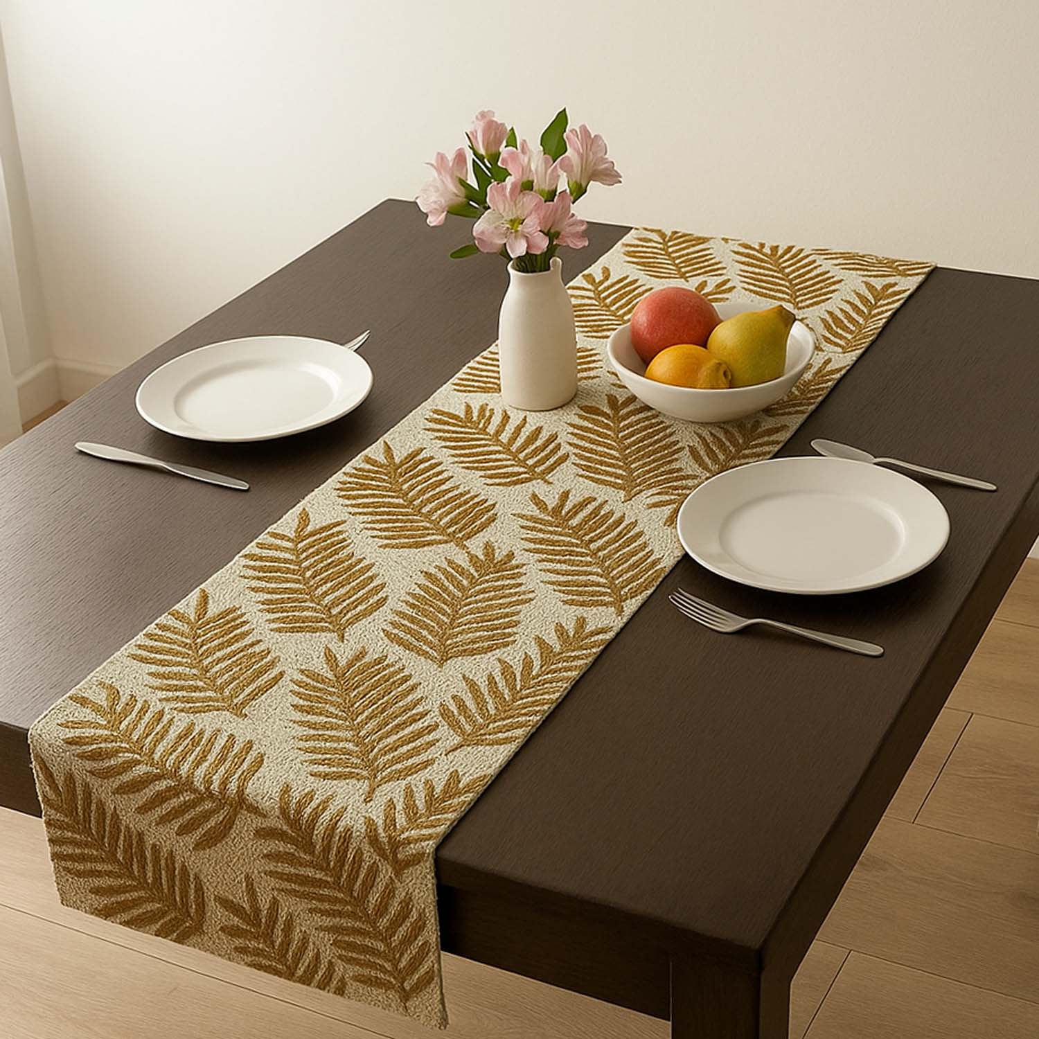 Leaf Beaded Polyester Table Runner Large- Gold