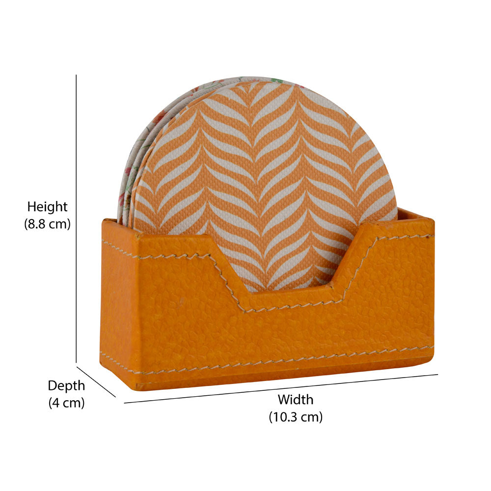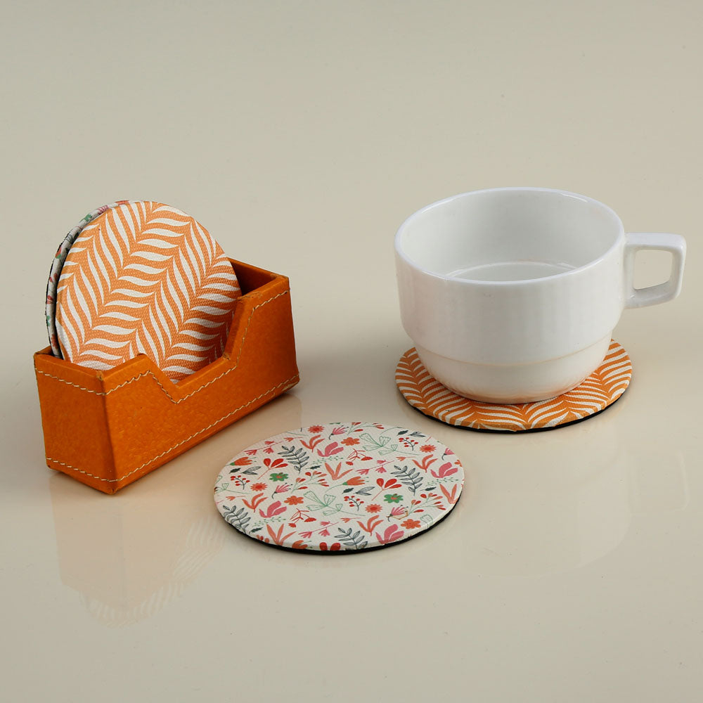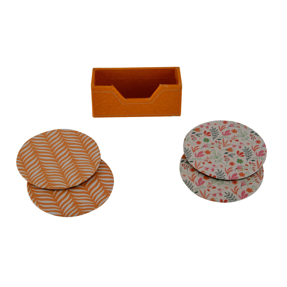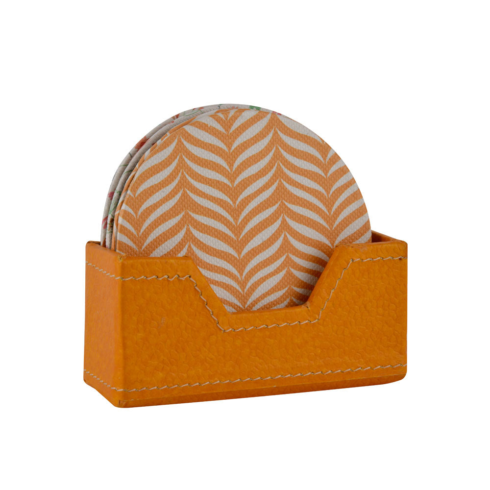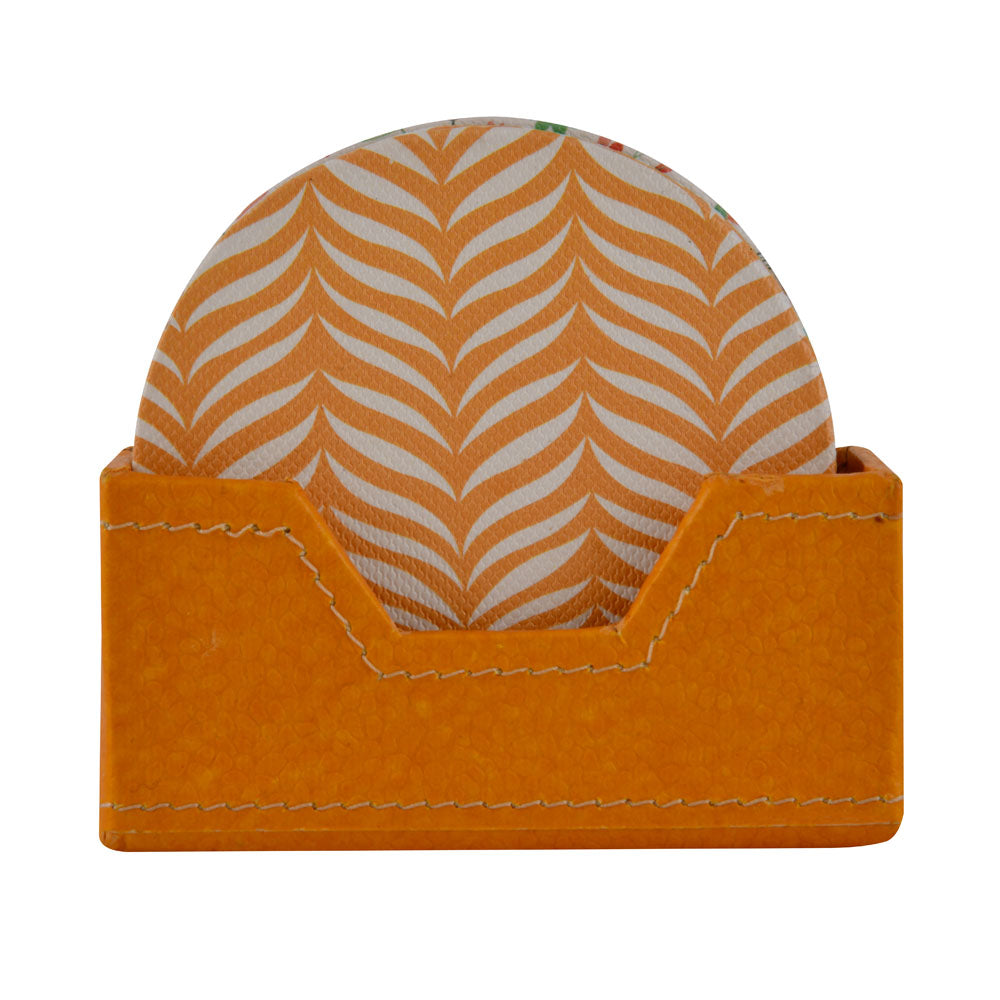 Leaf Design Round Shaped Coasters Set of 4 (Orange)