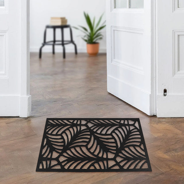 Leaf Design Rubber 18" x 30" Door Mat (Black)
