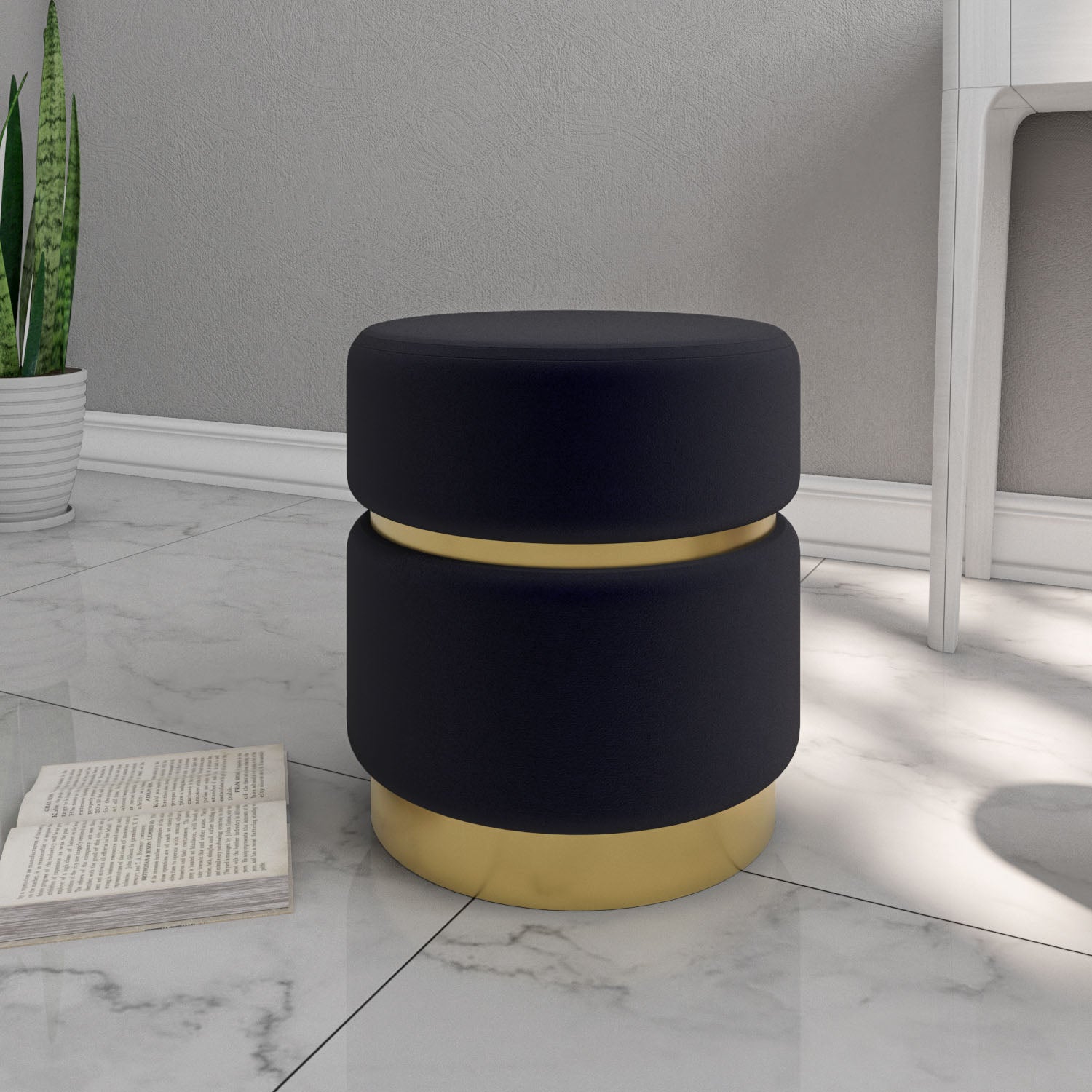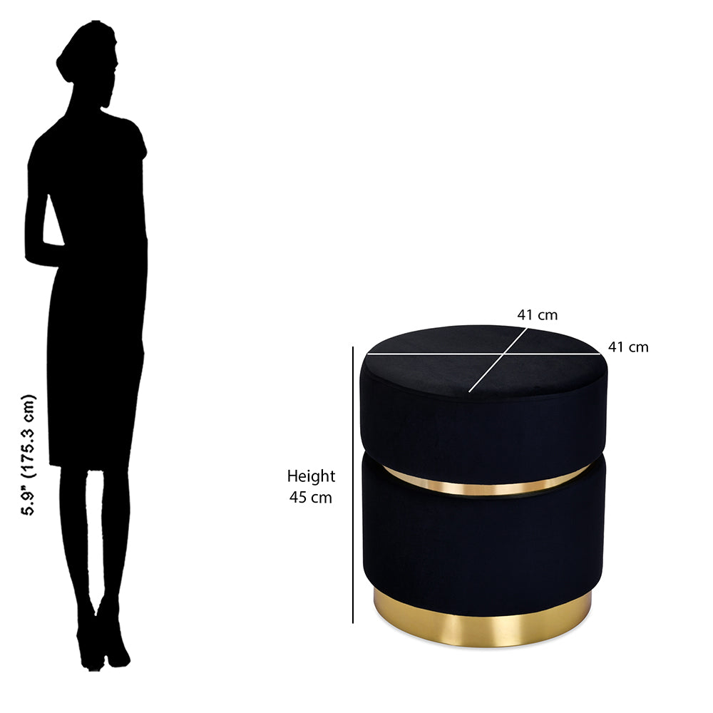 The Nilkamal Homes Loki Ottoman redefines modern luxury with its sleek design and premium materials. A central gold-plated metal ring, complemented by rich black fabric, creates a bold statement. The gold-tone metal base ensures durability while adding an elevated touch to any room. Crafted from high-quality engineered wood, foam, and velvet, this ottoman offers style and comfort. Seamlessly fitting into any living space, it serves as extra seating, and pairing two together works beautifully for a cosy coffee conversation, bringing both elegance and versatility.