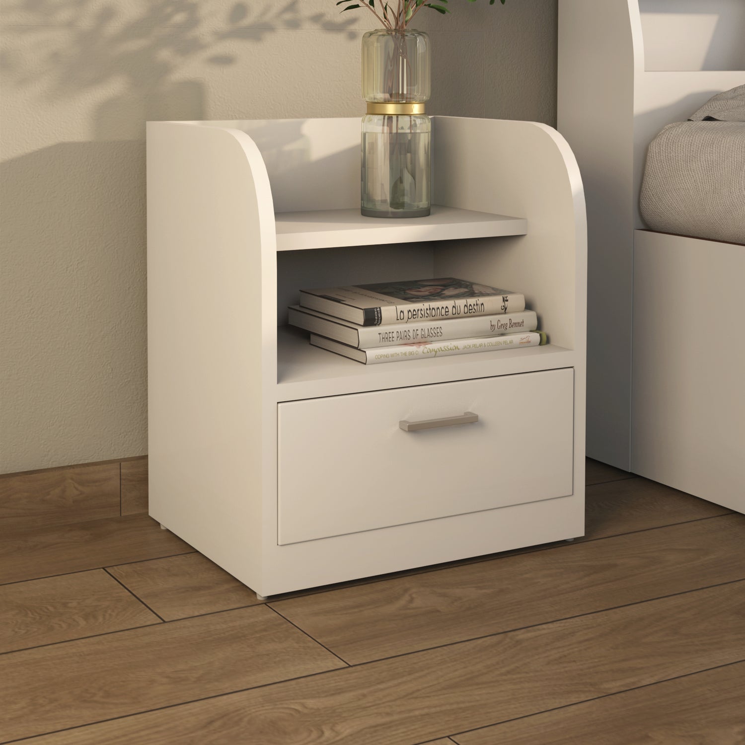 Max Engineered Wood Nightstand (Frosty White)