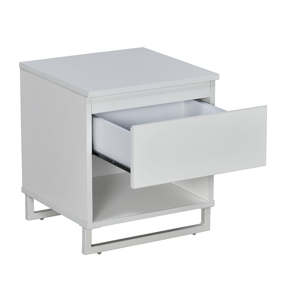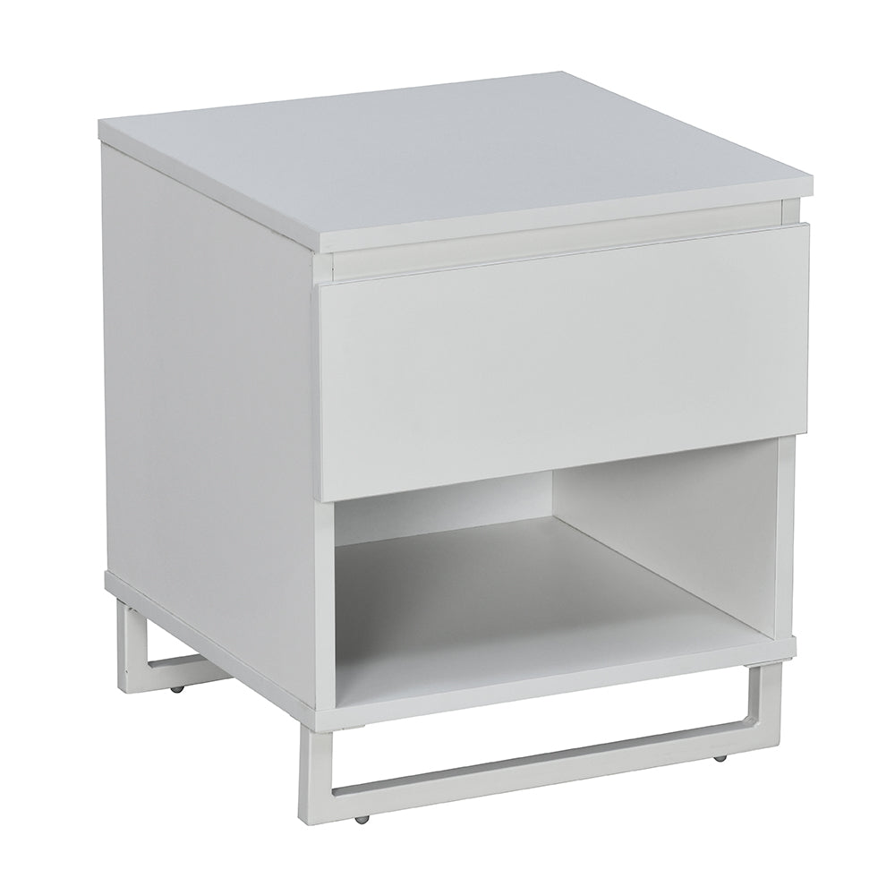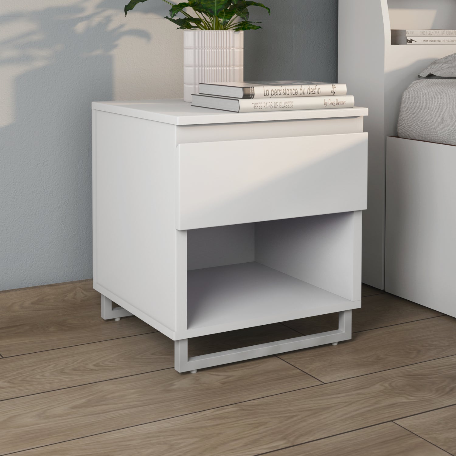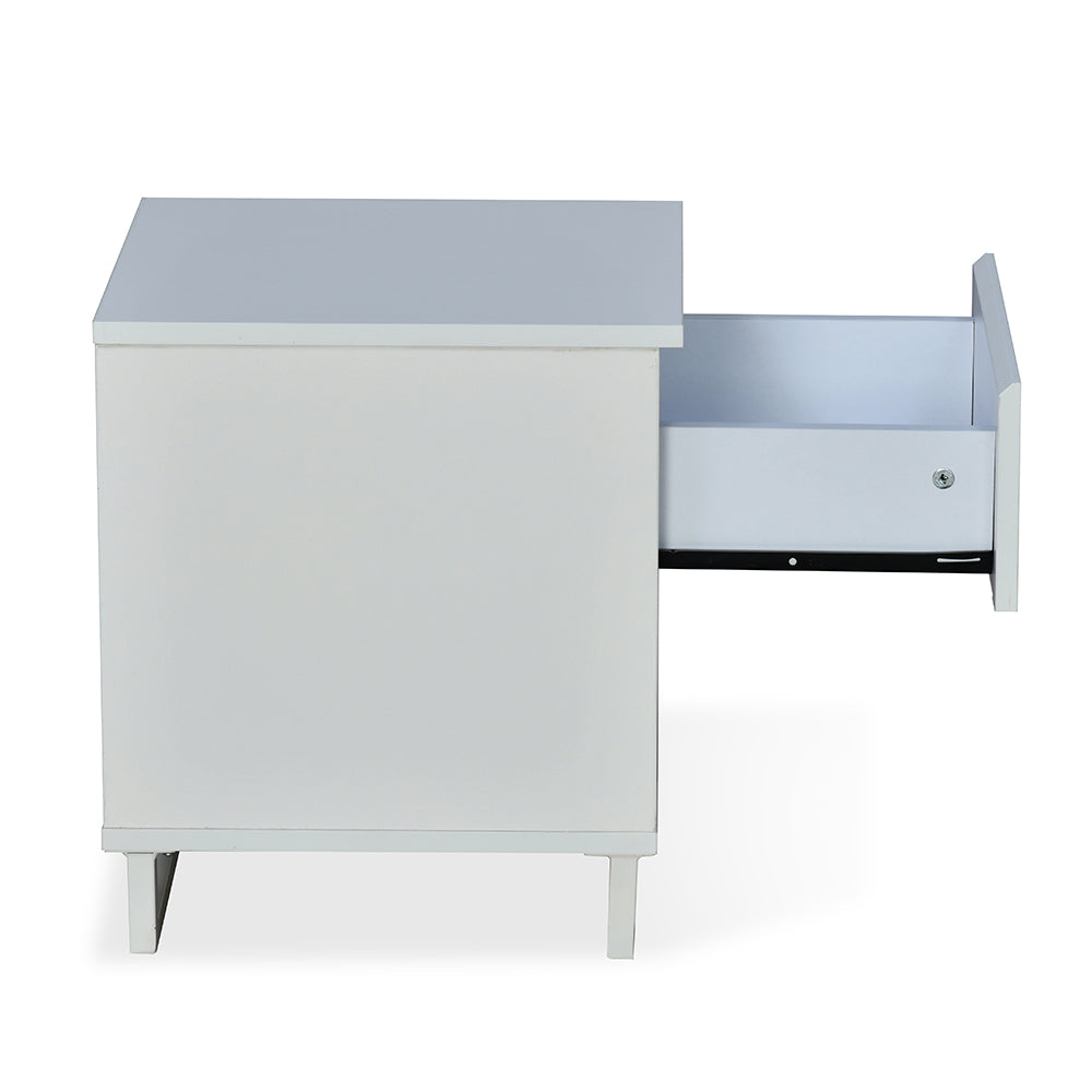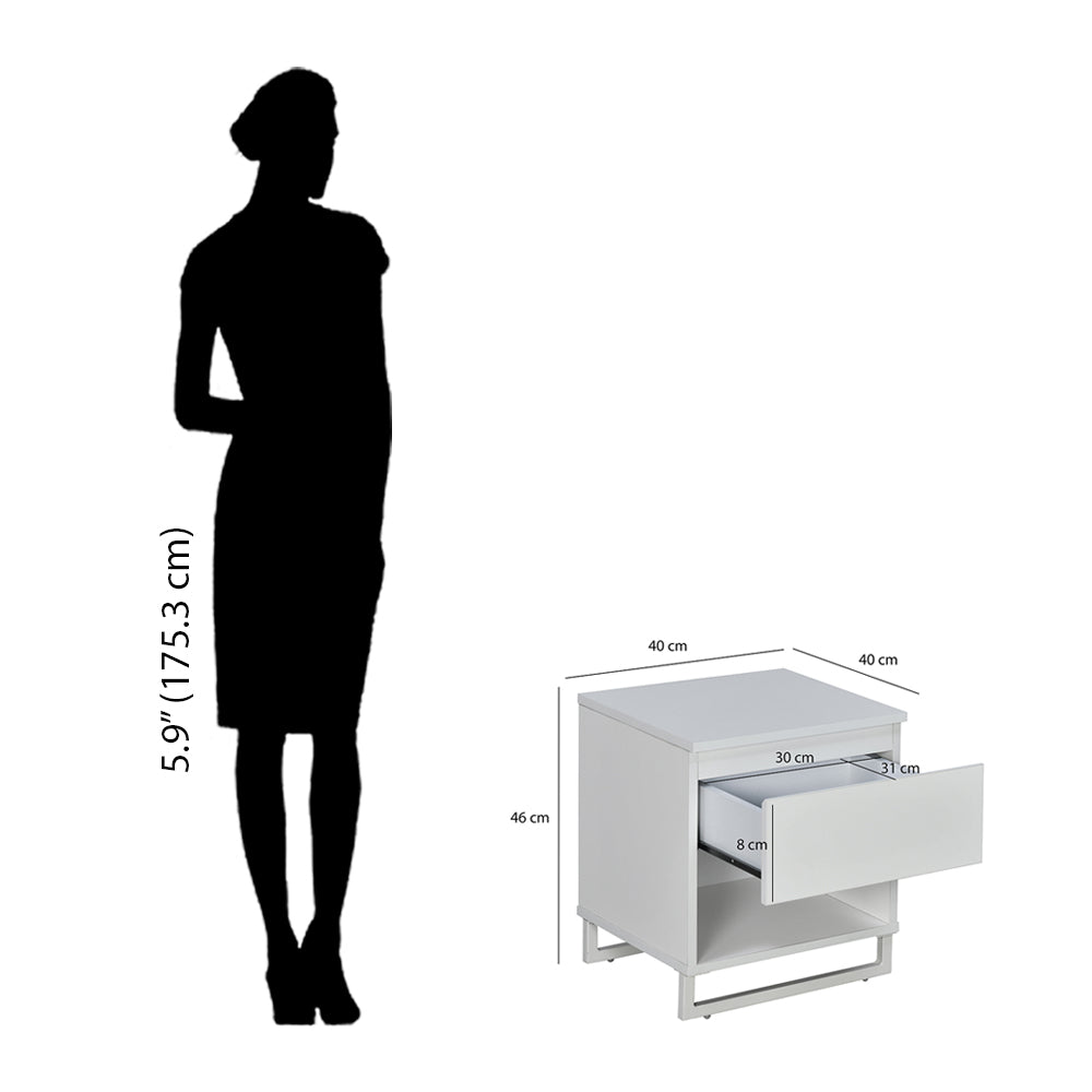 If you are searching for a modern nightstand to place by your bedside, then the Meta Nightstand can be a wise choice. This piece by Nilkamal has stylish appeal with a contemporary design that works well with any interior. It comprises a top surface, a drawer and a bottom shelf. You can use the top shelf of this nightstand to keep a lamp, a glass of water, or an alarm clock that you might need at night. Below is a drawer installed with nylon slides for smooth movement and can store your medicines or reading glasses. And a bottom shelf to hold your books at night. The nightstand is also robust when it comes to construction. Its resilient particle board construction makes it durable and long-lasting. It is additionally supported by metal base legs, which increase its stability. The nightstands frosty white colour matches any décor style and brings warmth to the interior. Stay organized with this Meta Nightstand and keep your essentials close at hand.