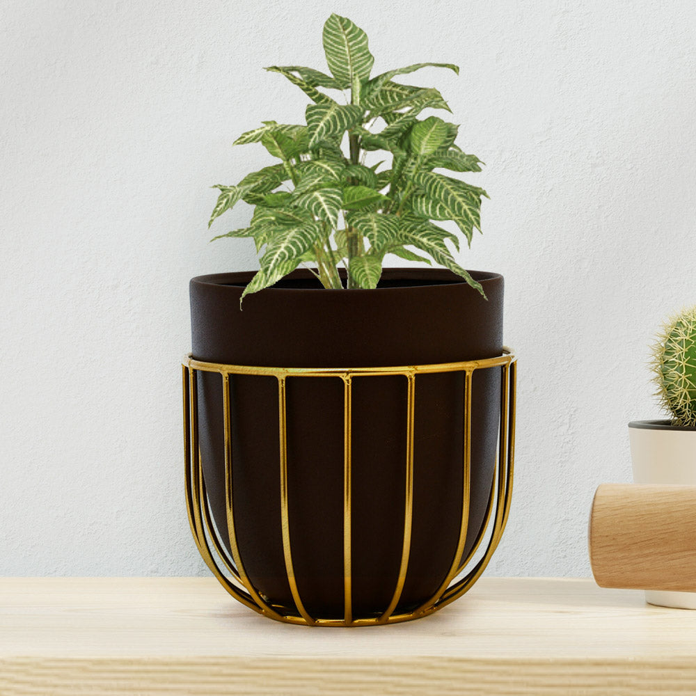 The Nilkamal Homes Metal Jali Planter boasts a robust iron construction, ensuring durability and stability. The brown planter seamlessly adds a touch of natural warmth, while the striking golden jali contributes a distinctive element to the design. This stylish and functional piece provides a platform for showcasing your favourite plants, effortlessly blending rustic charm with contemporary elegance in any living space, thereby enhancing your overall decor.