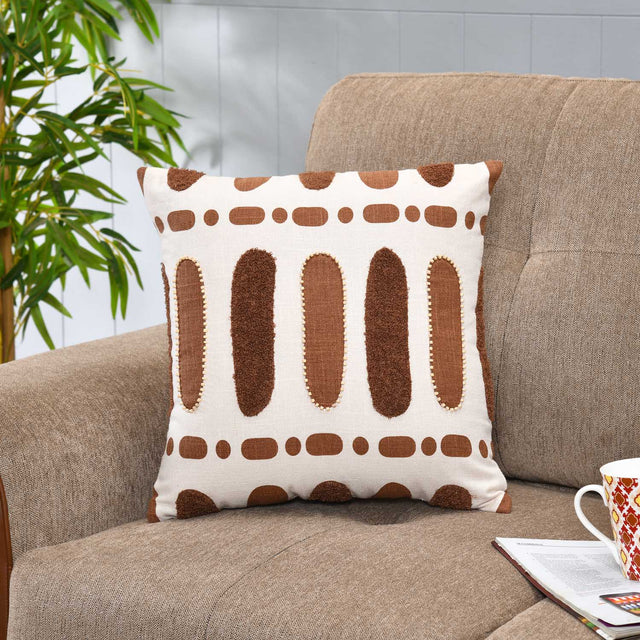 Oval Patch Pattern Cotton Cushion Cover- Brown