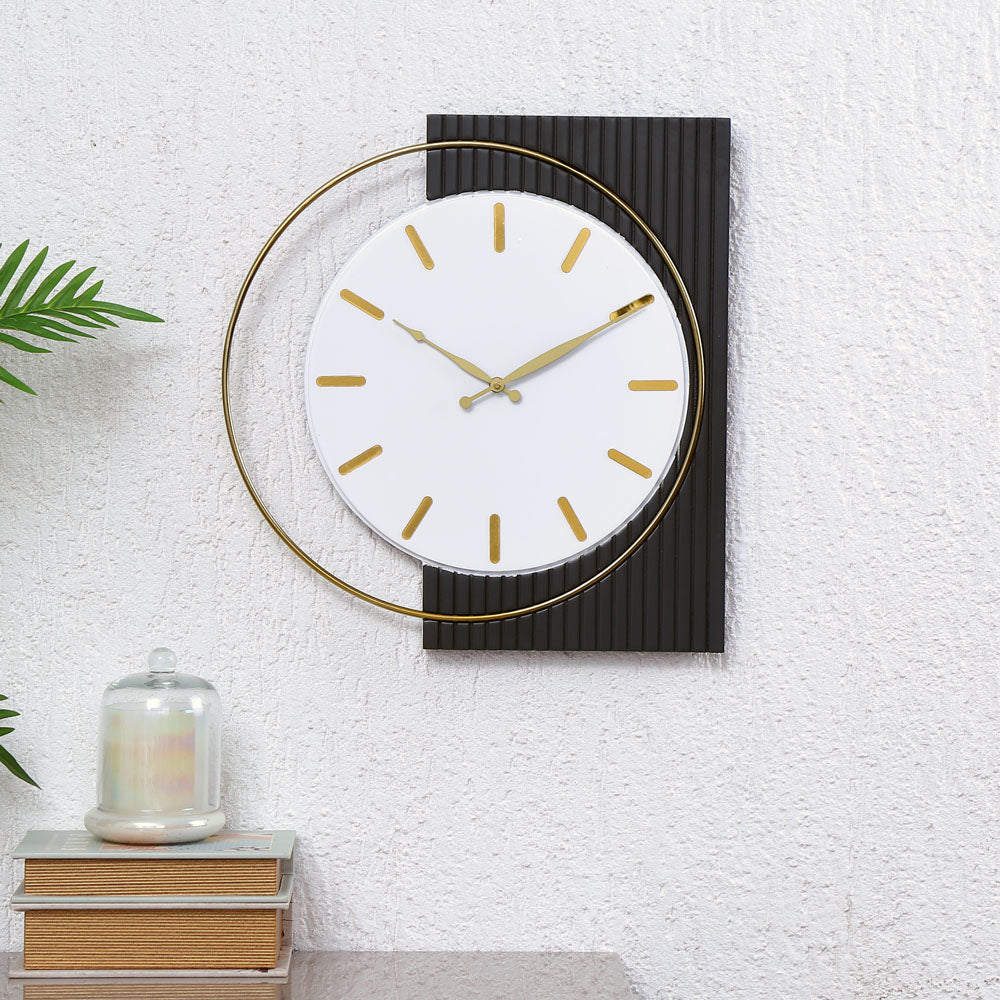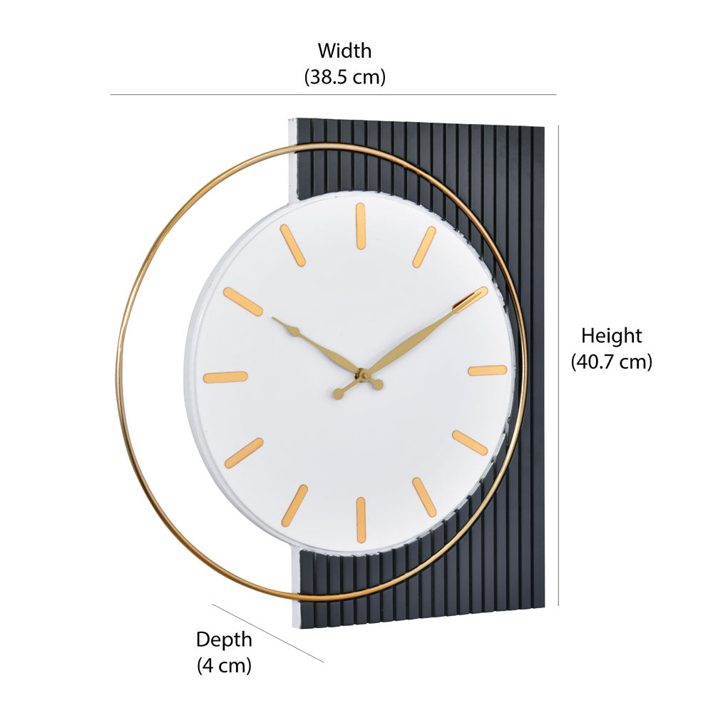 The Nilkamal Homes Wall Clock in grey and white combines style and functionality. Its eye-catching round shape with a rectangular frame, crafted from high-quality wood and metal, creates a durable yet elegant statement. The minimalistic clock face offers excellent readability, making it a practical addition to your living space. This beautiful wall clock enhances the decor of any home or office, complementing various interior styles with its timeless charm.