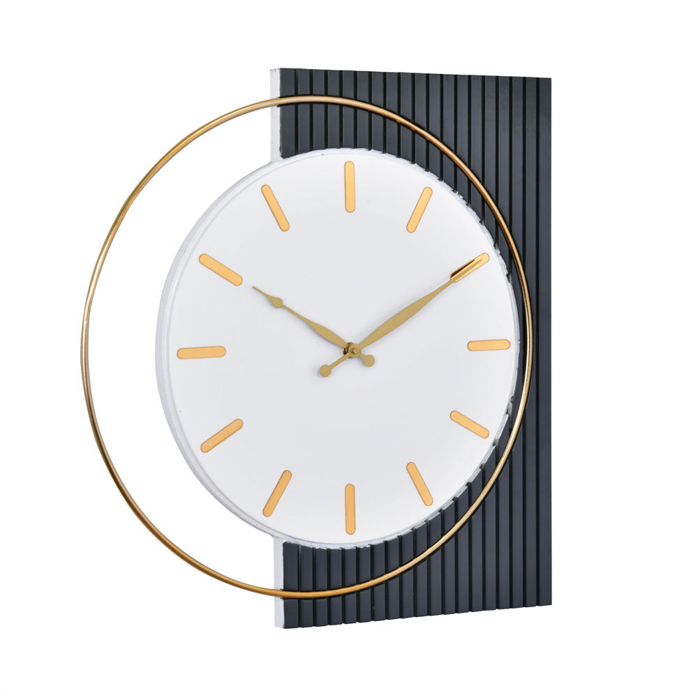 Rectangular Round Wooden and Metal Wall Clock (Grey & White)