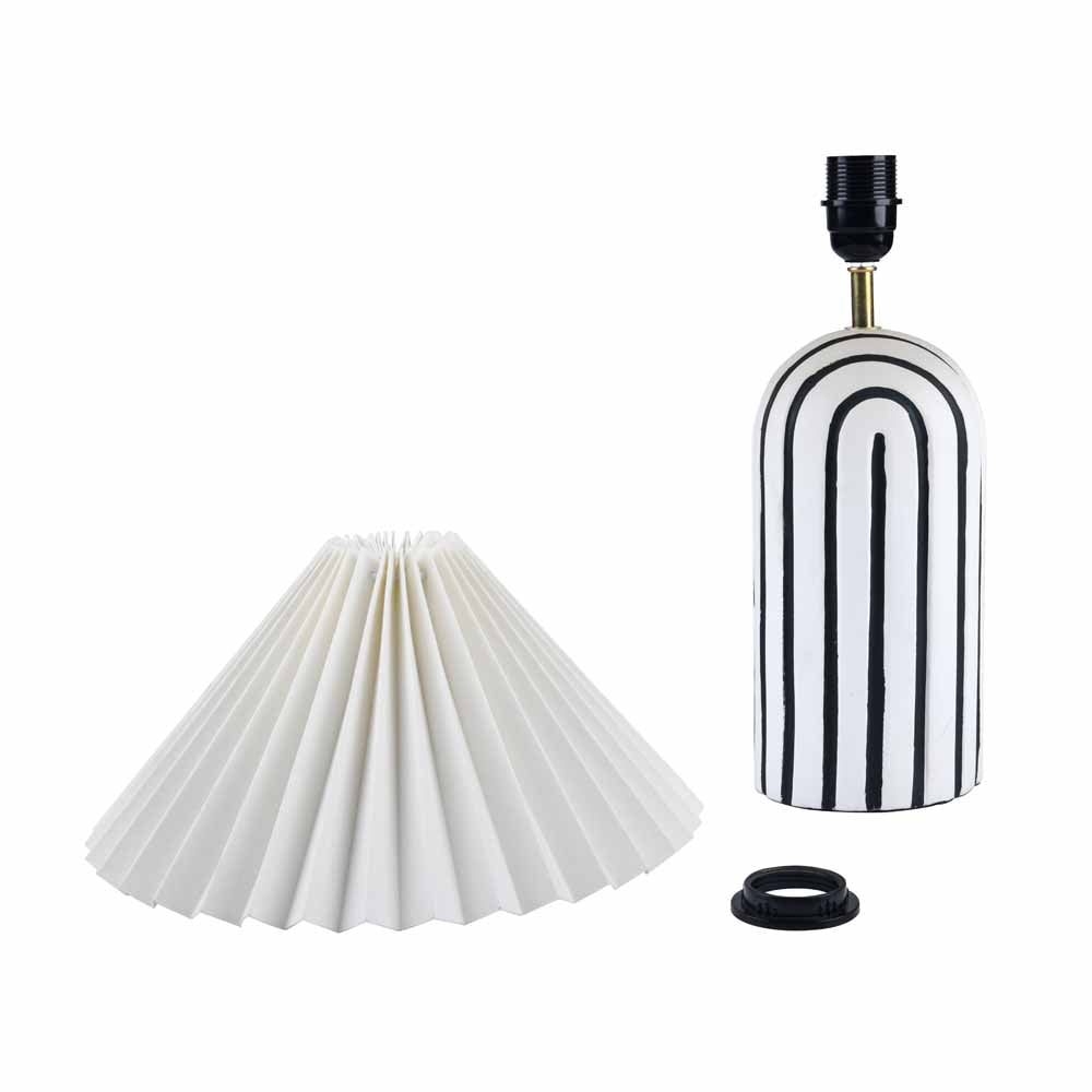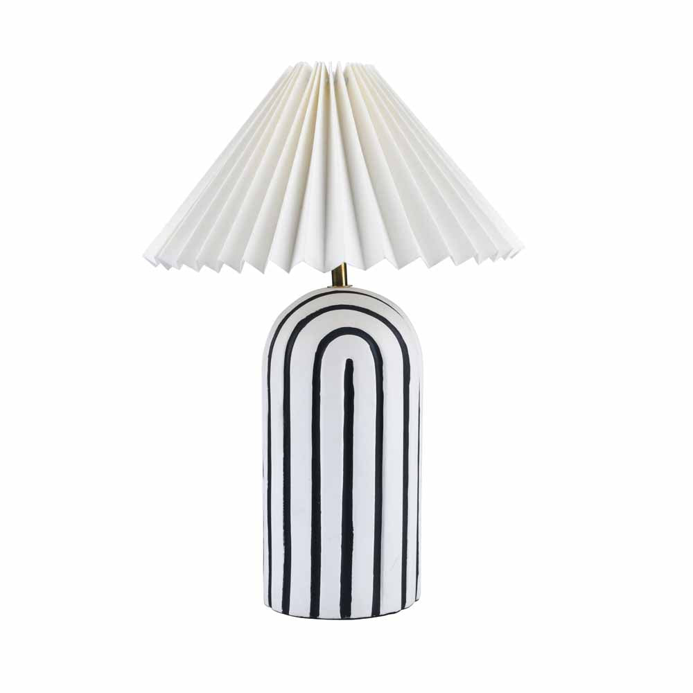 Retro Fabric Shade Paper Mache & Metal Base Table Lamp (White & Black)