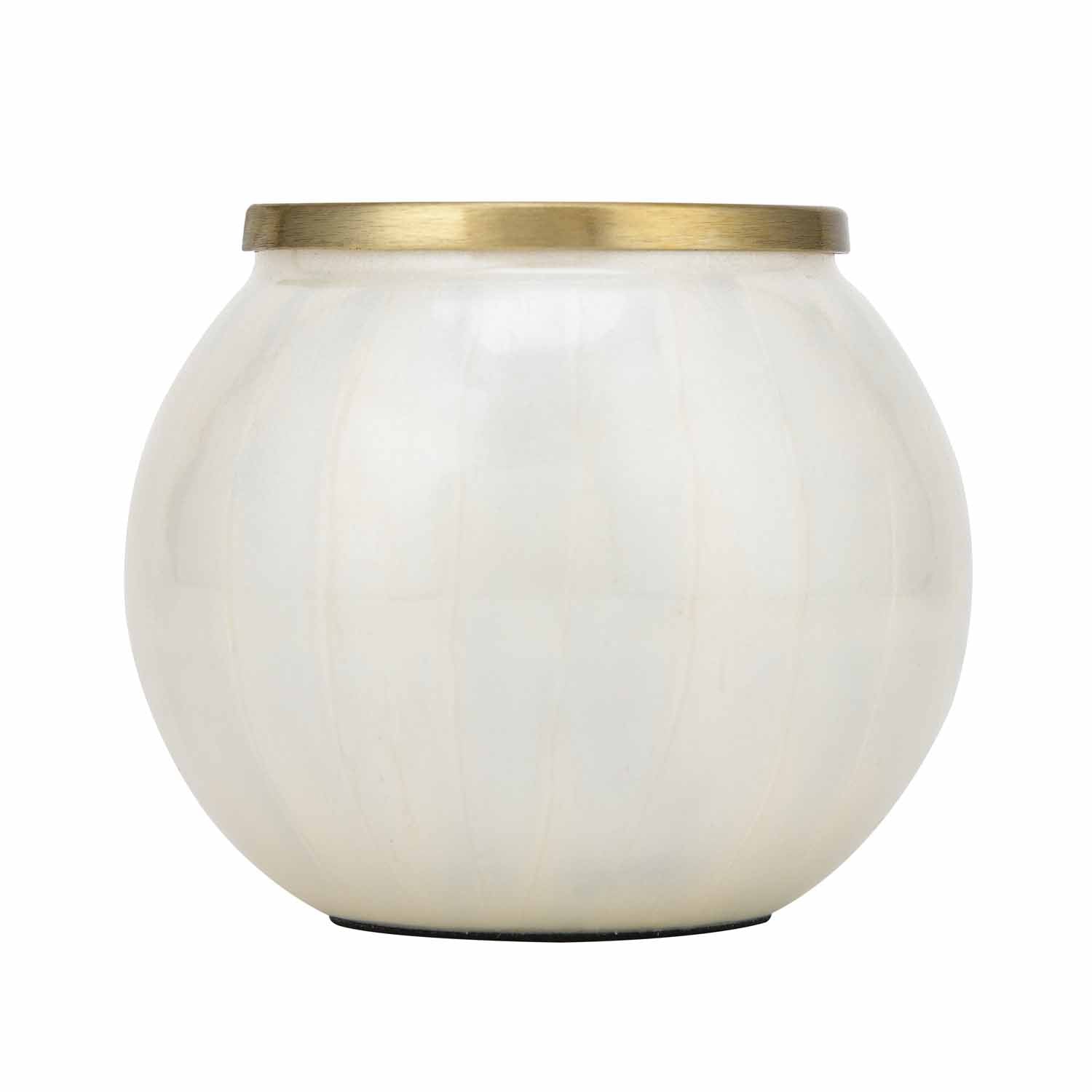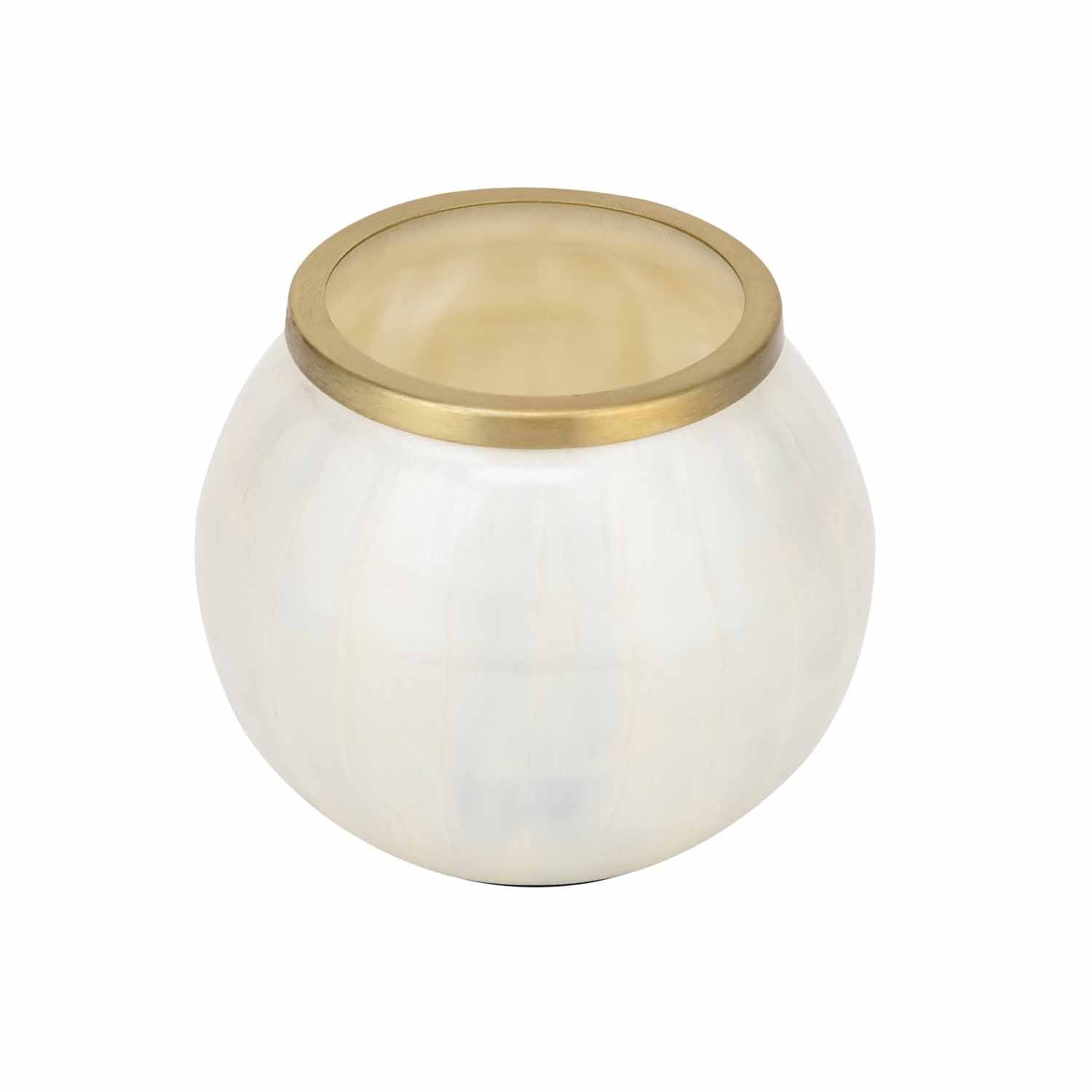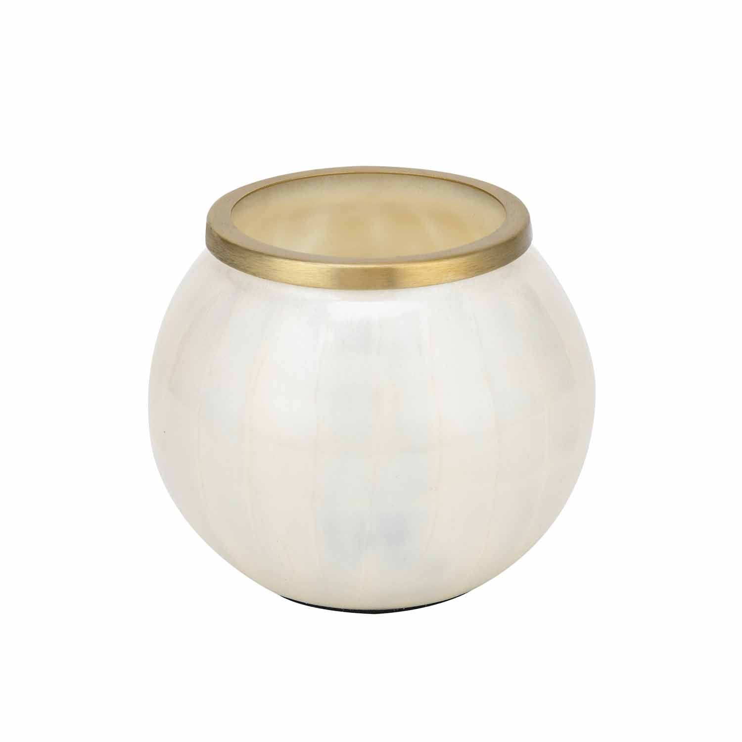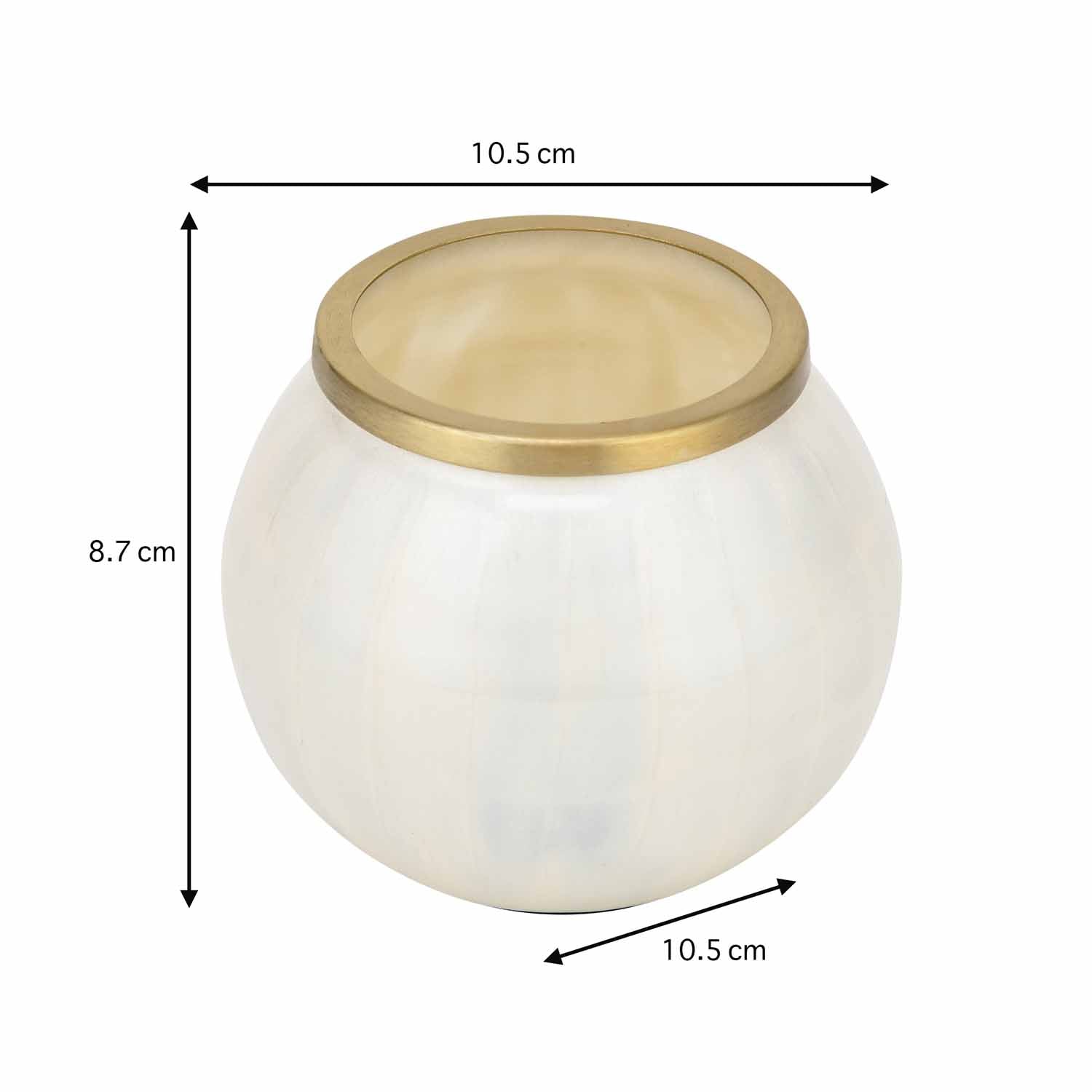 This Nilkamal Homes Votive features a delightful round shape in cream tone with a golden rim that adds charm to your home. Perfect for displaying tealights or small candles, it creates a cosy ambience while doubling as a decorative piece. Its glass and iron build ensures long-lasting use, making it a lovely addition to any tabletop or shelf.