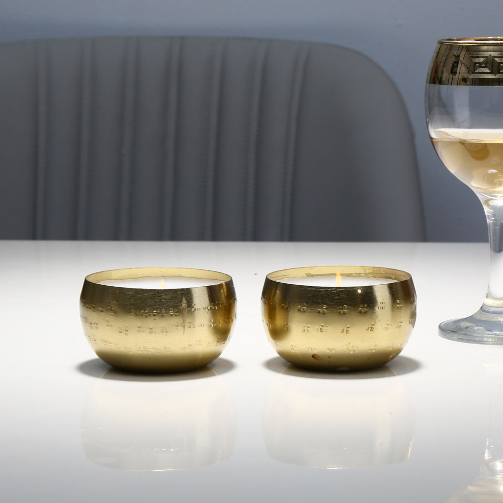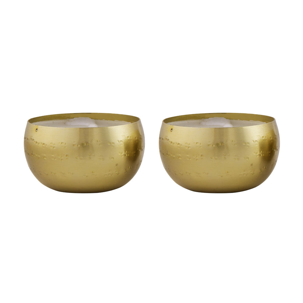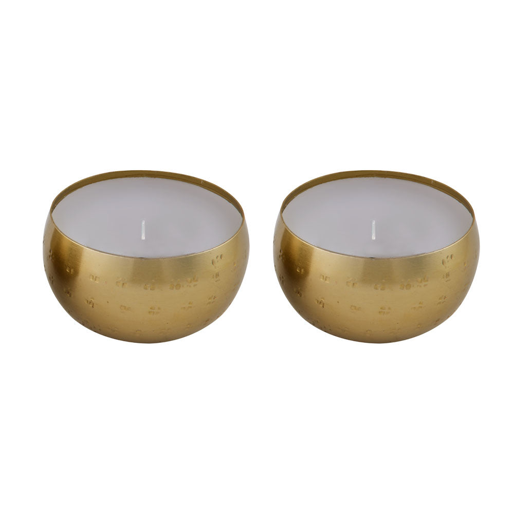 Round Shaped Decorative Metal Votive With Wax Set of 2 (Gold)
