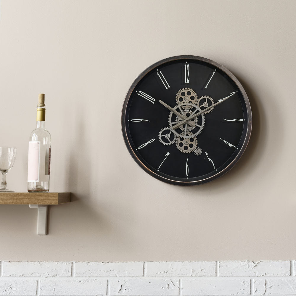 The Nilkamal Homes Wall Clock boasts a durable iron build for long-lasting use. Its elegant round black dial with large numbers highlights a modern allure, and the rotating visible gears add depth and visual interest to the design. The impressive size makes a bold statement in any room, ensuring it catches attention. This stylish and functional wall clock enhances both home and office spaces.
