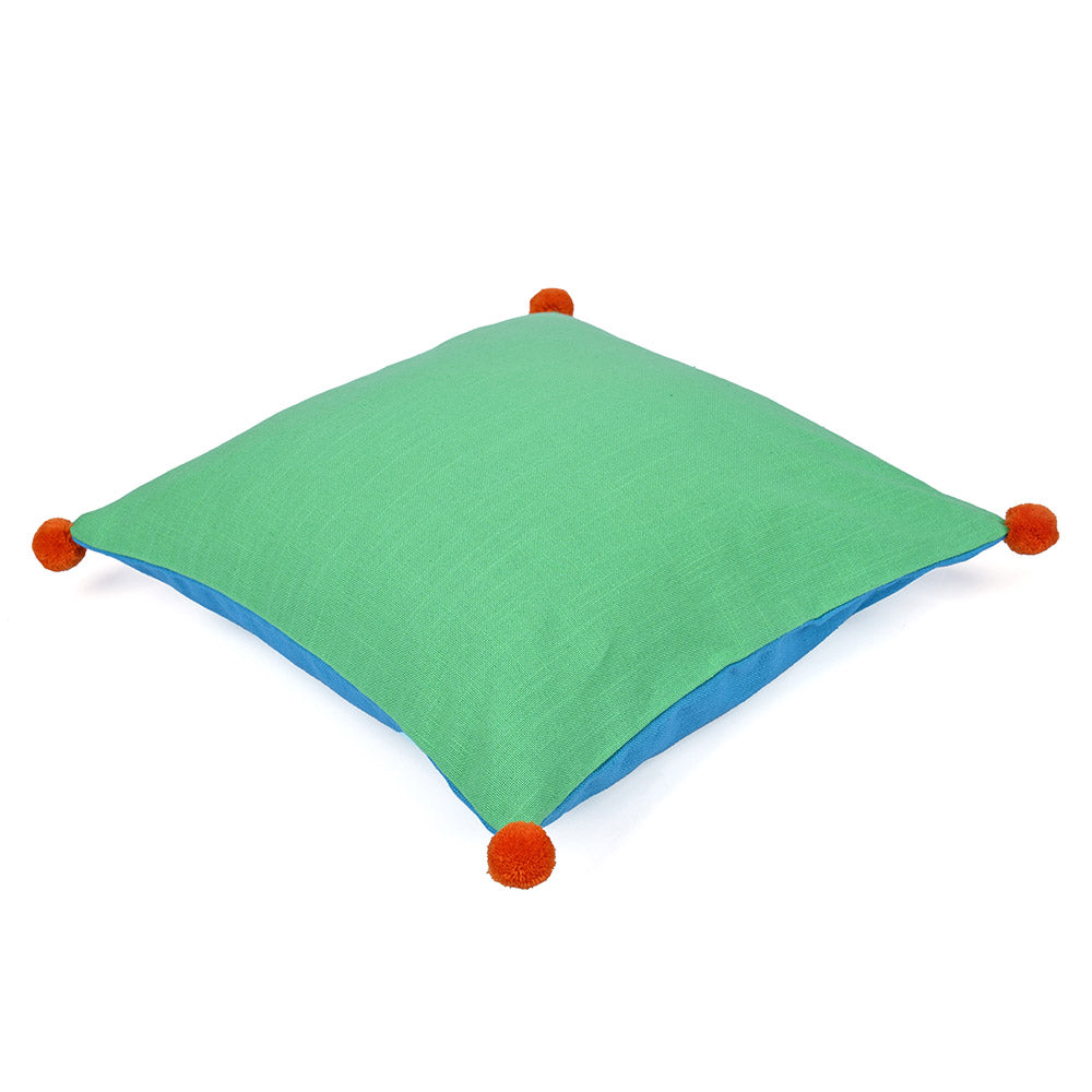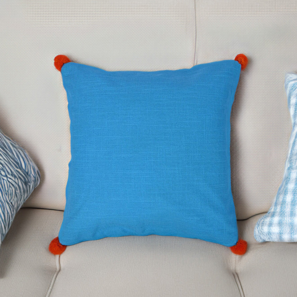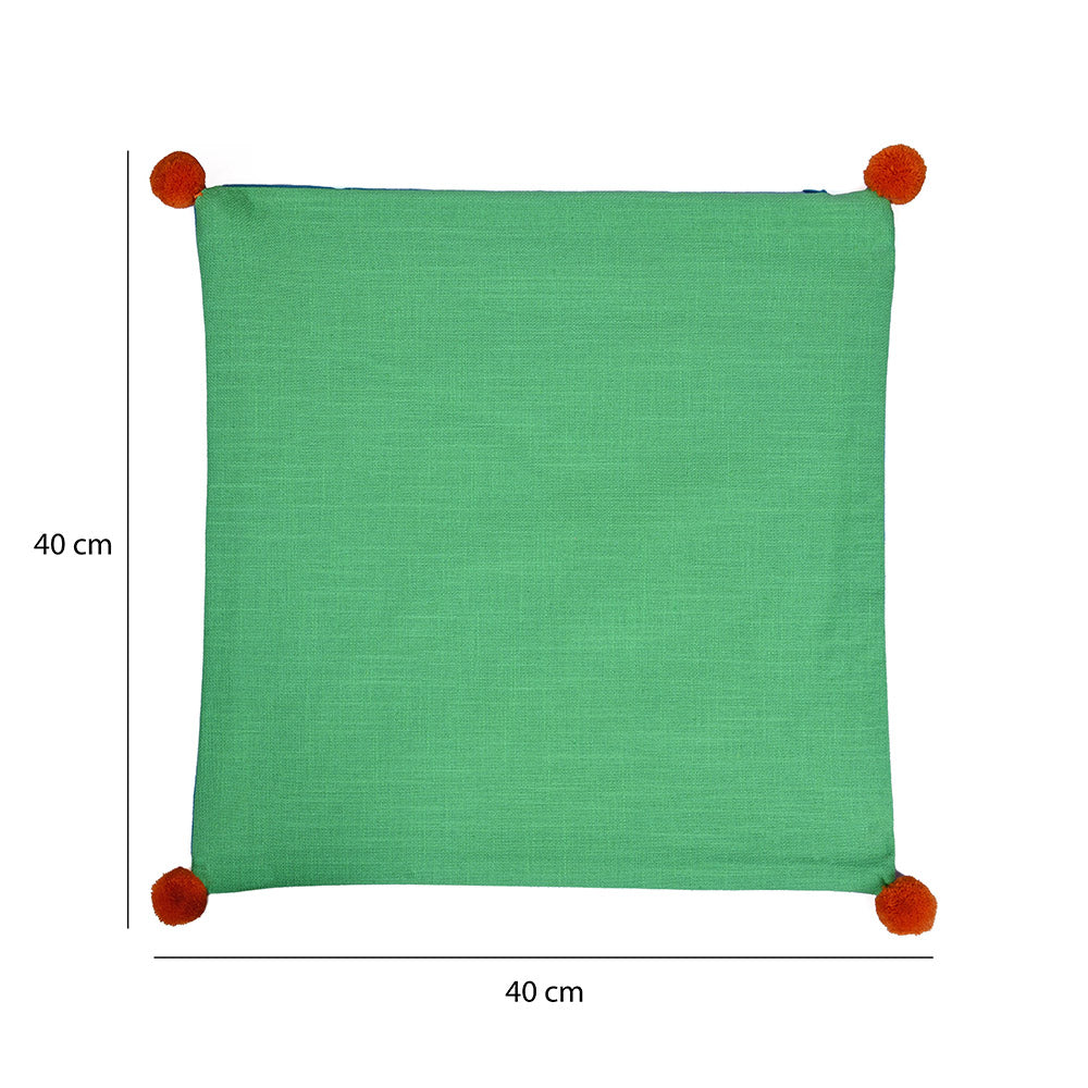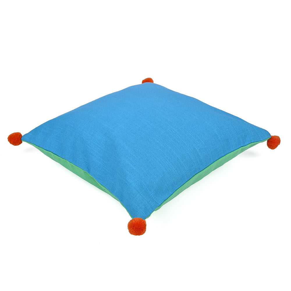 Solid Cotton 16' x 16' Two Sided Pom Pom Cushion Cover (Blue & Green)